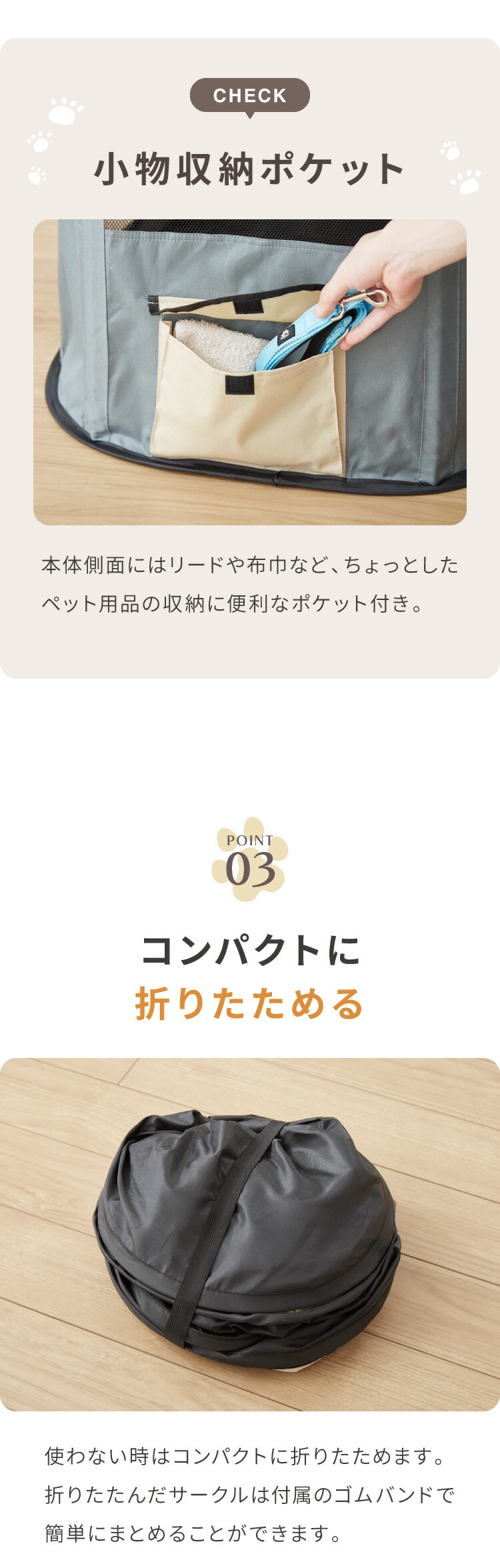 ・コンパクトに収納できる折り畳み式のペットサークルです