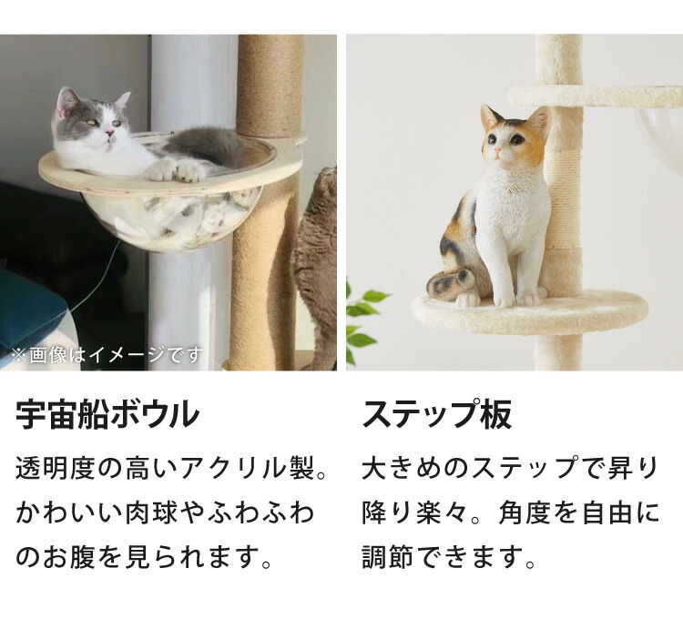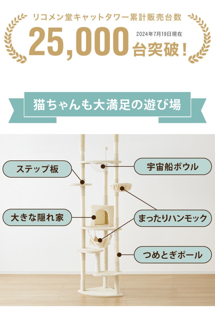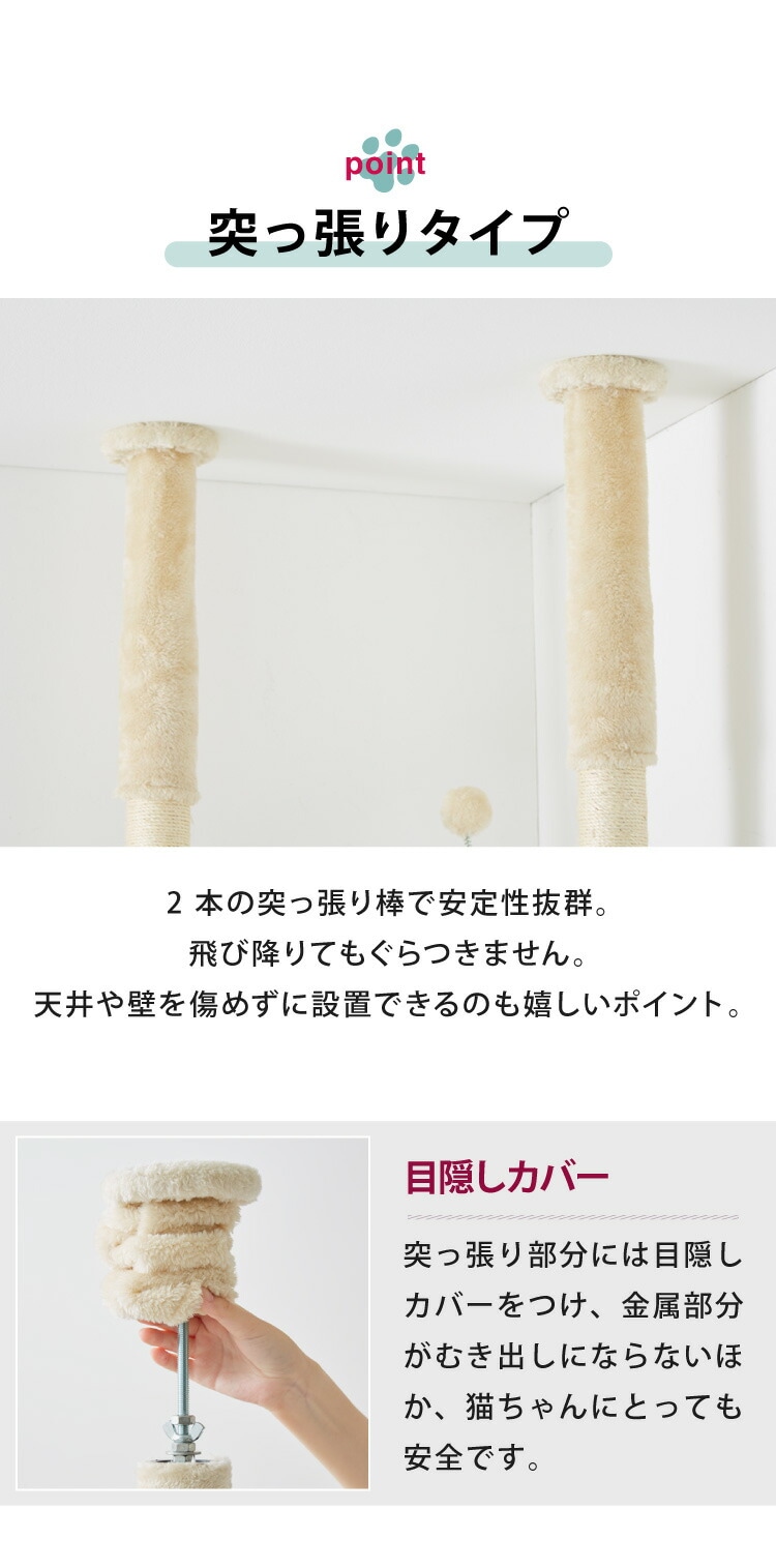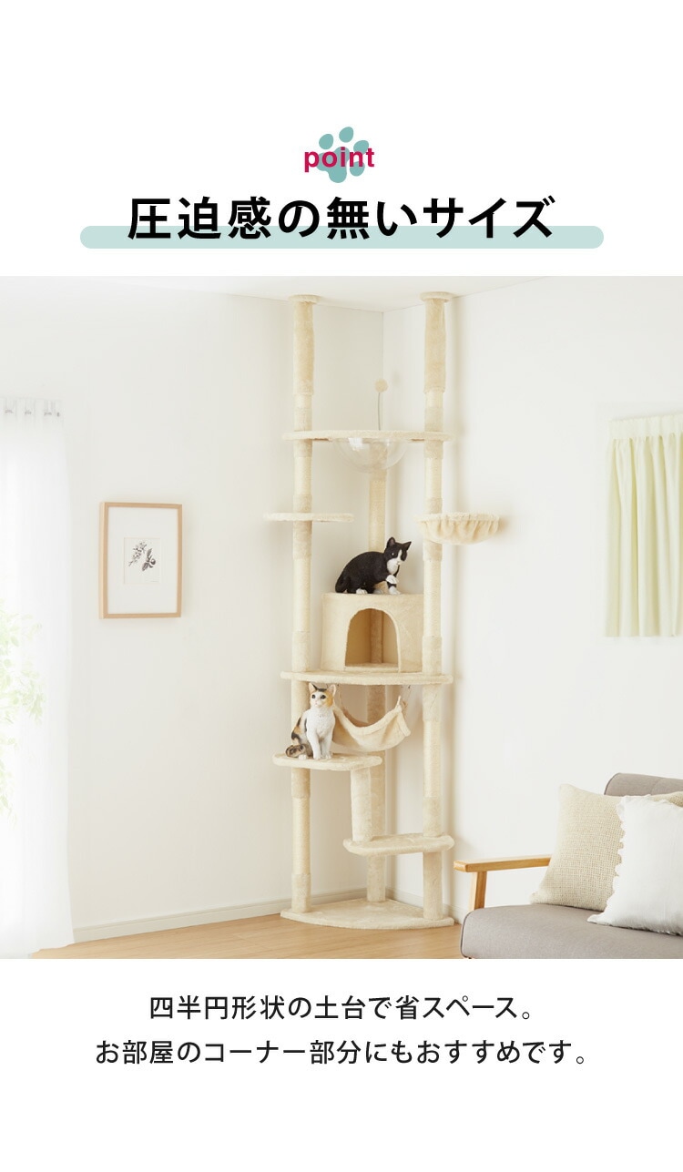 キャットタワー つっぱり 突っ張り 高さ228~253cm ハンモック付 宇宙船付き 隠れ家 ハウス 爪とぎ 大型 ハイタイプ ベージュ ライトグレー キャットハウス 猫タワー 運動不足解消 ペット用品 猫 ねこ【送料無料】