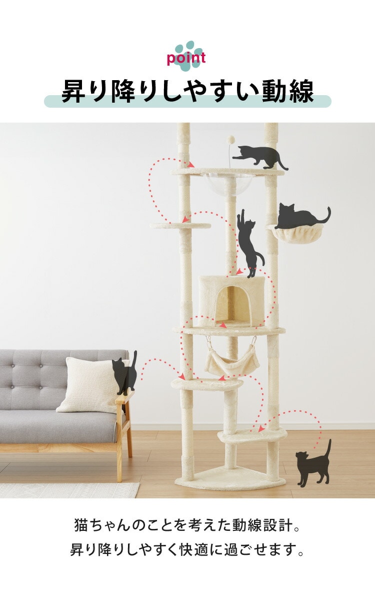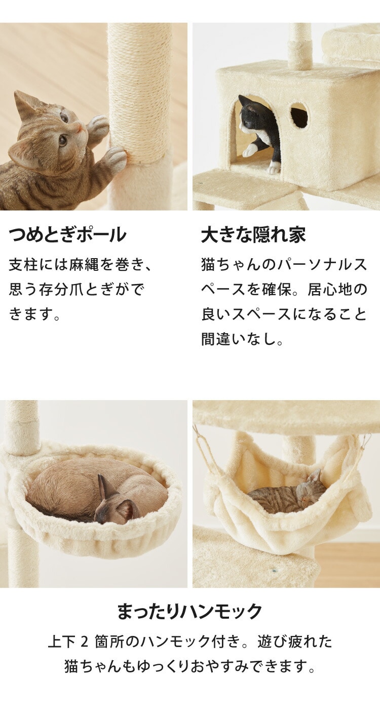 キャットタワー、キャットハウス、キャットウォーク、キャットツリー、猫タワー、据え置き、ハウス、ハンモック、爪とぎ、つめとぎ、ベッド、おもちゃ、多頭飼い、シンプル、かわいい、インテリア、ペット、ペット用品、猫用品、省スペース、置き型、登りやすい、低ホルムアルデヒド、エコテックス、FSC認証