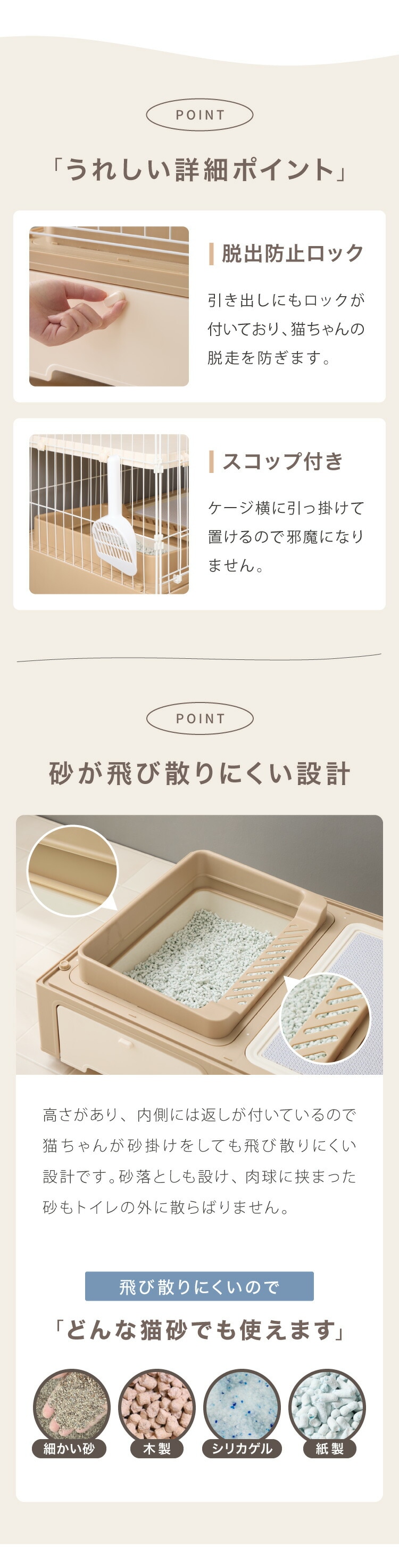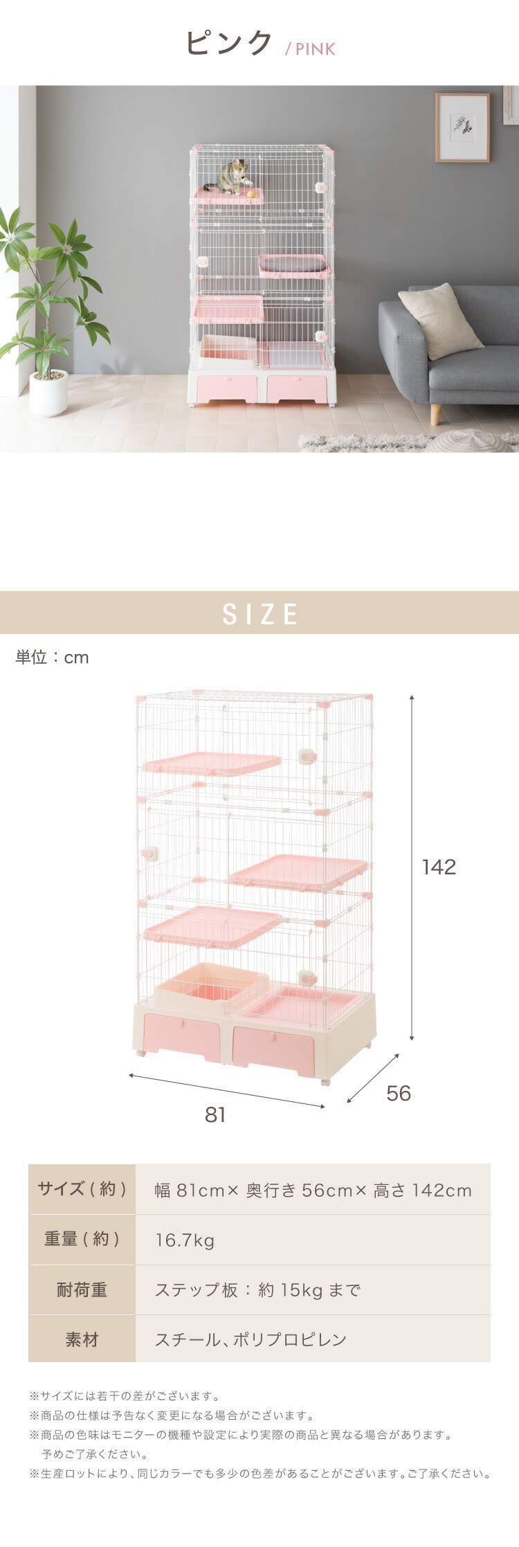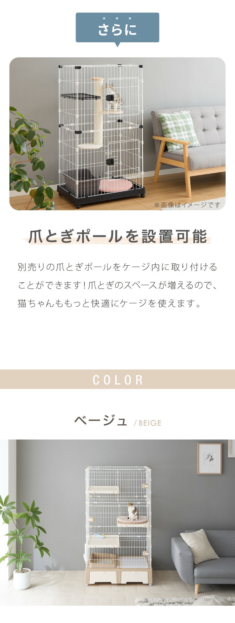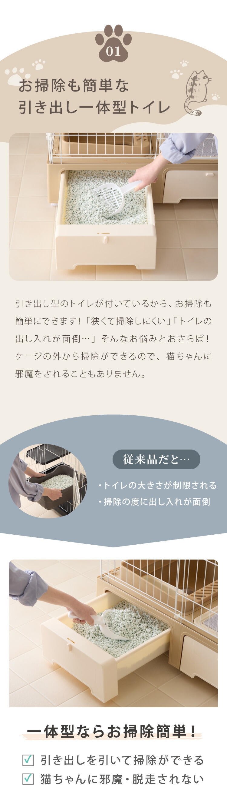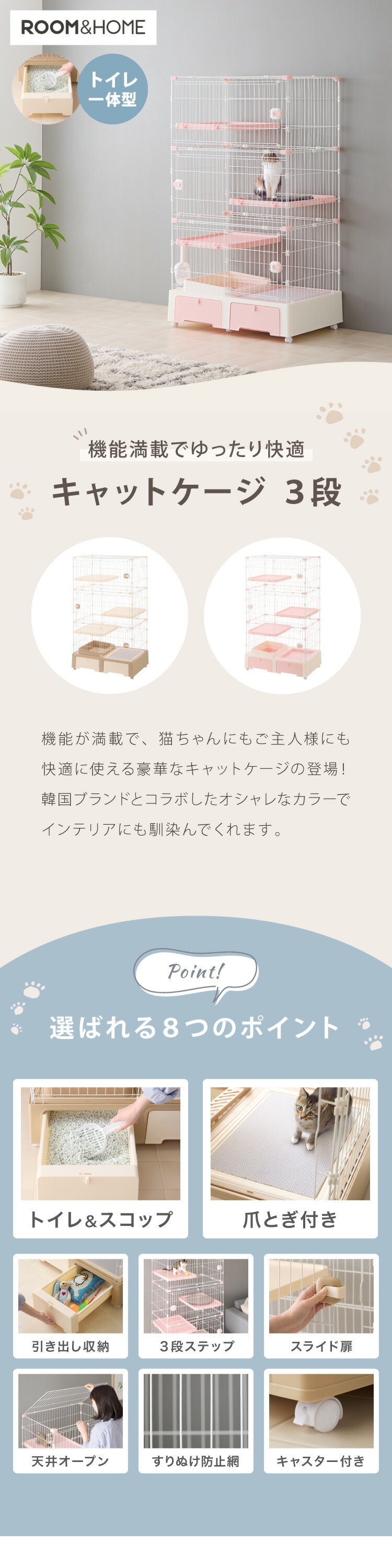 【リコメン堂限定オリジナルカラー 2色】 猫 ケージ キャットケージ 3段 トイレ付き 引き出し キャスター おしゃれ 収納 トイレ付 脱走防止 お手入れ簡単 ペットケージ キャットハウス 室内 屋内【送料無料】