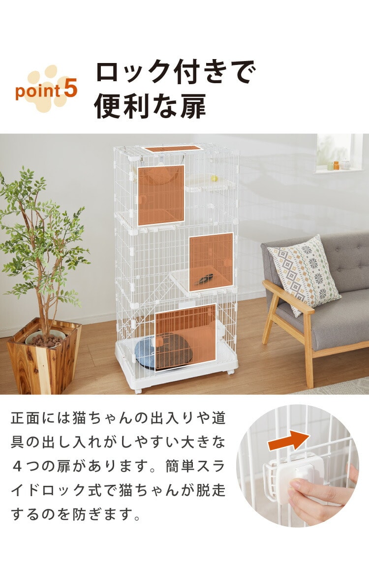 ネコ用、猫グッズ、ペット、ペットグッズ、猫用品、ペット用品、キャットハウス、ハウス、多段、多頭、スチール、ペットゲージ、お手入れ簡単、猫ゲージ、高級感、北欧、子猫、シニア猫、室内飼い、白、梯子付き、ステップ付き、階段付き、ハンモック付き、ロック、ロック扉、天井ドア、工具不要、頑丈