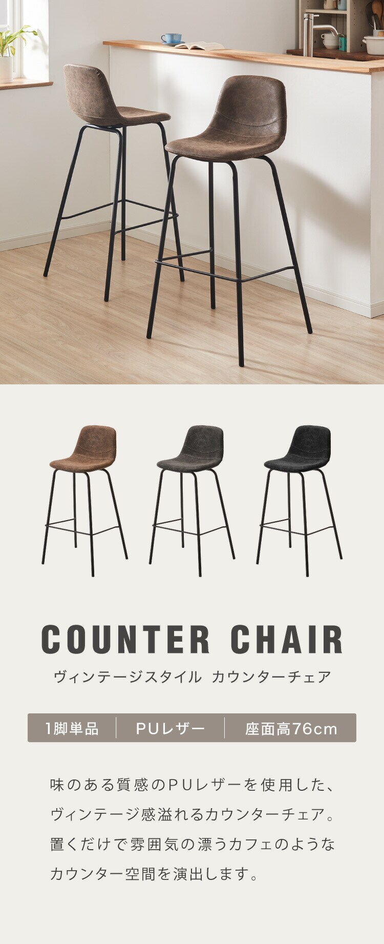 カウンターチェア 背もたれ付き ヴィンテージ イス モダン 北欧 おしゃれ ミッドセンチュリー バーチェア ハイスツール チェア スツール 椅子 シンプル カフェ キッチン ダイニング【送料無料】のレビュー
