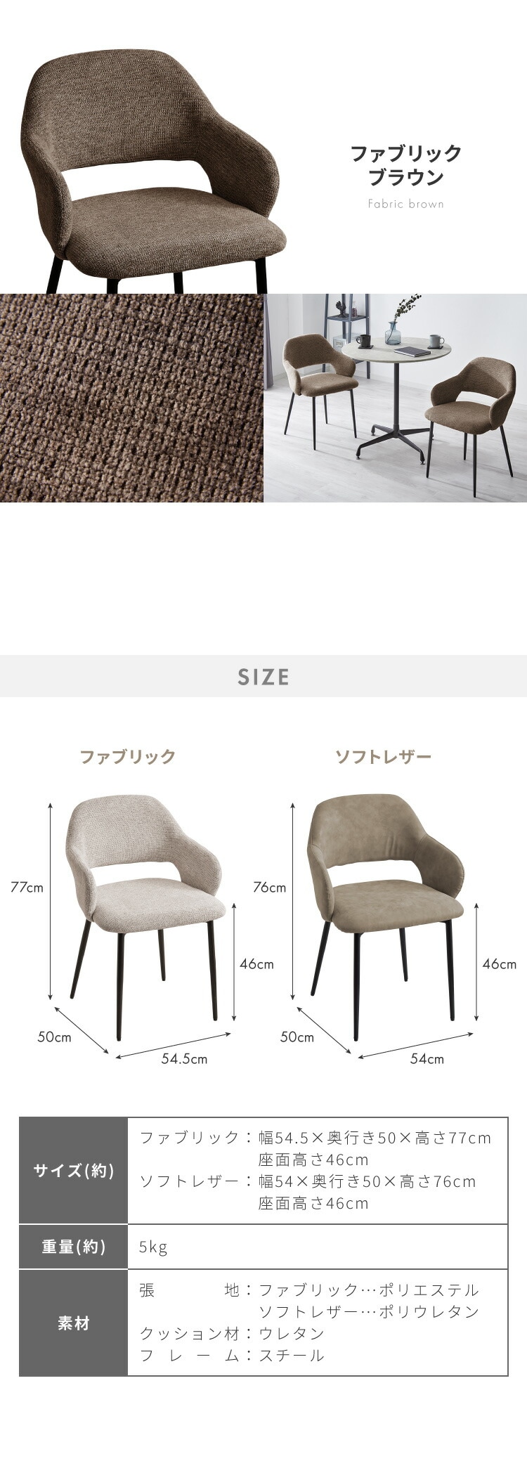 ファブリック:幅54.5×奥行き50×高さ77cm 座面高さ46cm