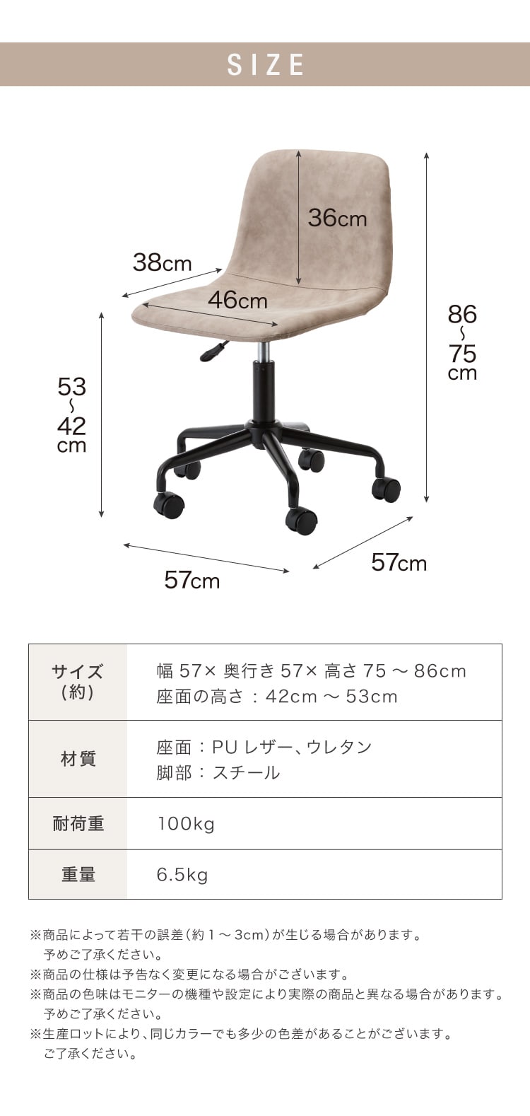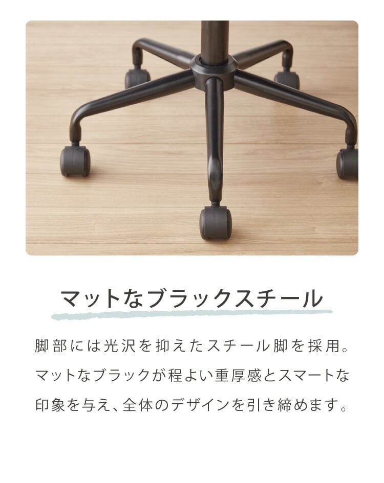 ・座面はなめらかな肌触りでお手入れも簡単なPU素材です。