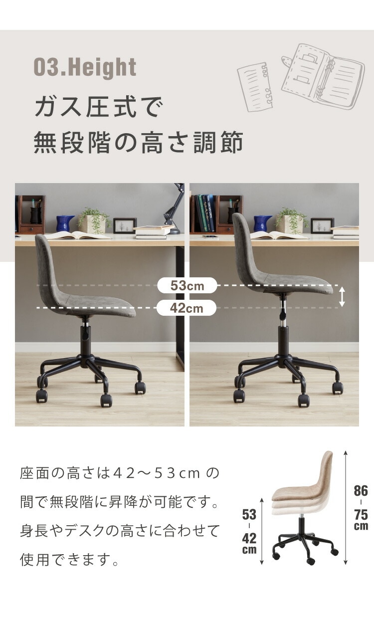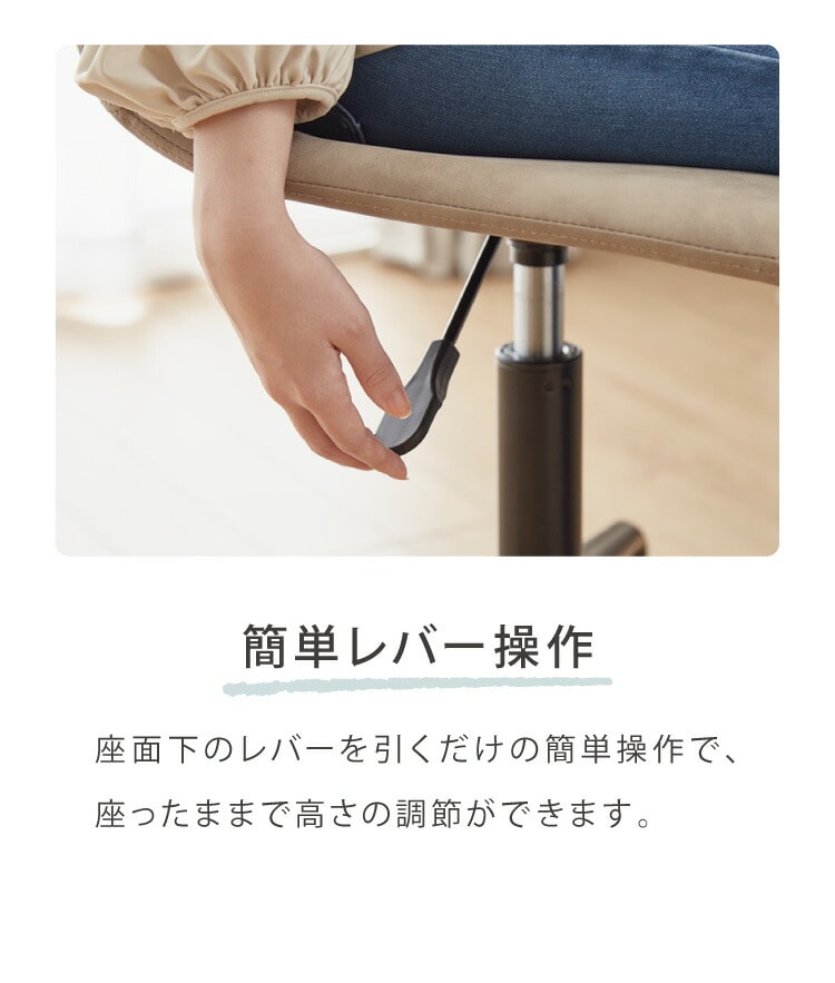 ・ガス圧昇降式で簡単に高さ調整ができます。