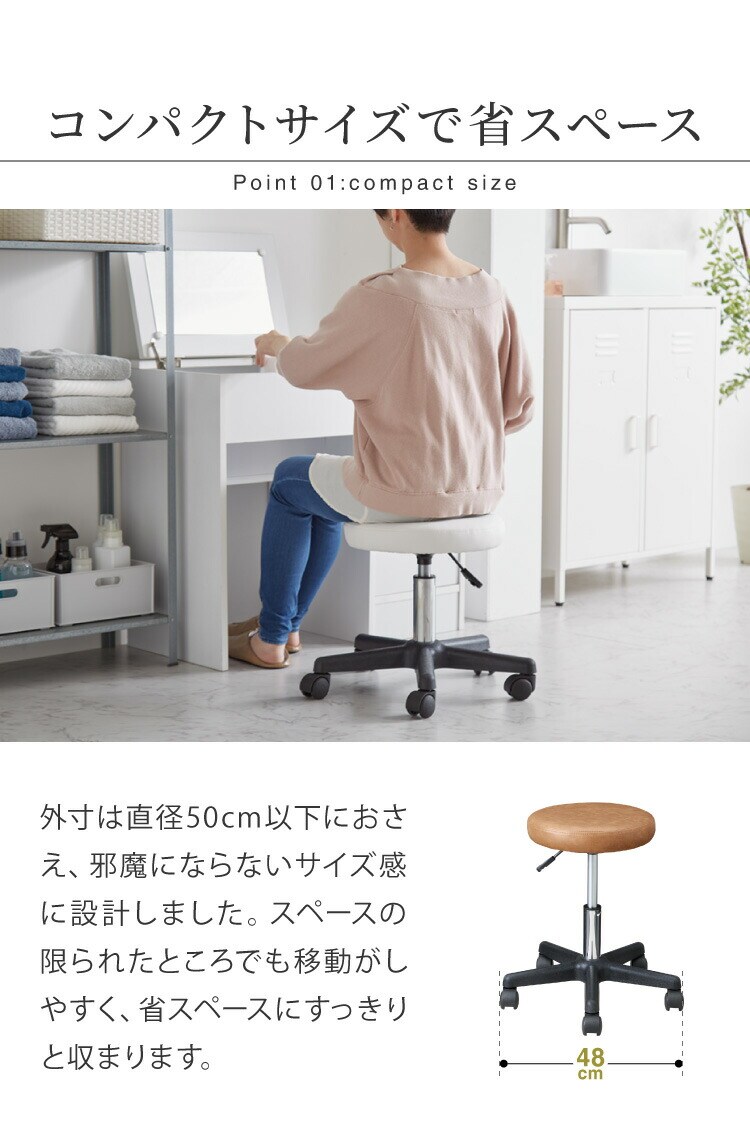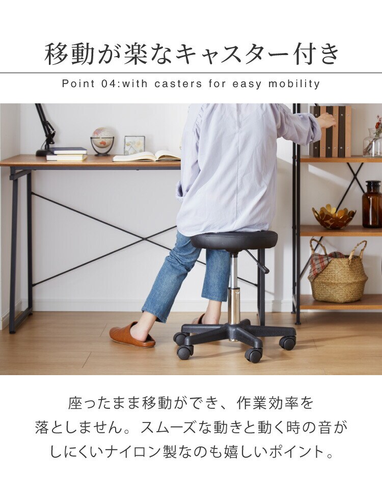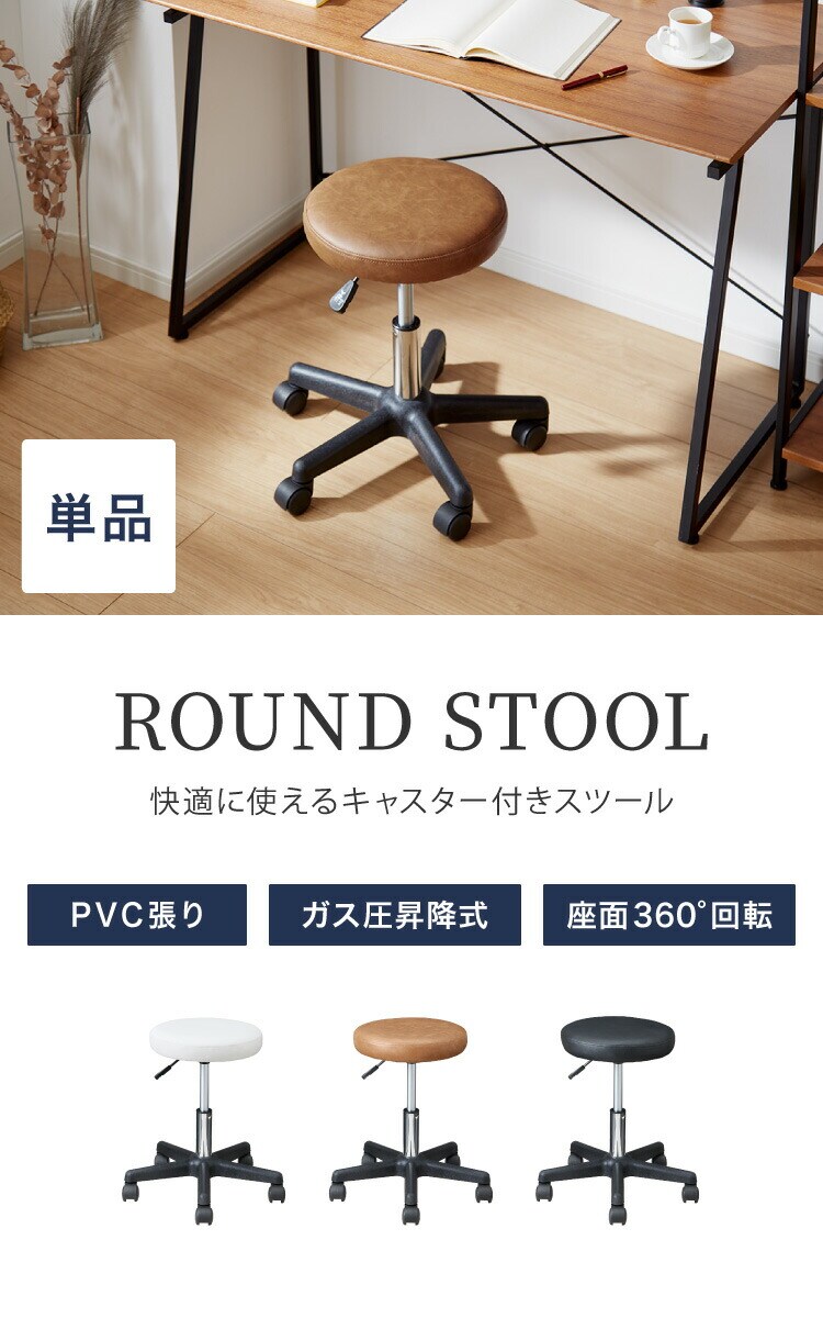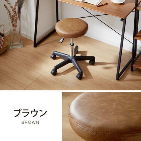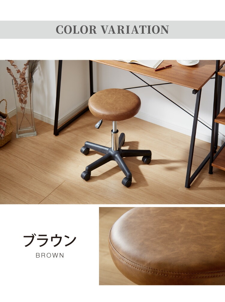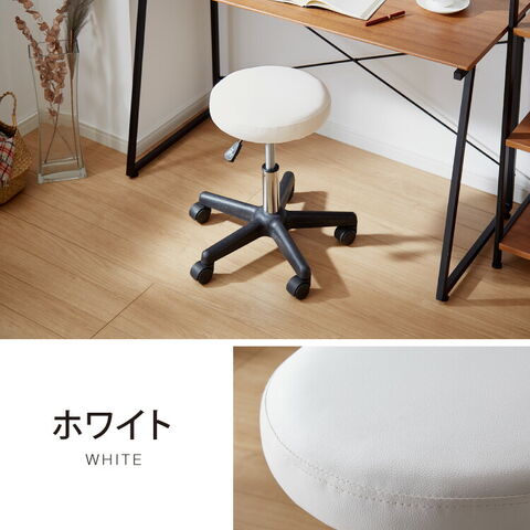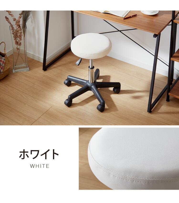 ワーキングチェア、ラウンドスツール、白、黒、茶色、回転、インテリア、デスクチェア、ガス圧昇降、ガス圧、昇降式、キッチン、事務、エステ、エステサロン、厚手クッション、サロンワーク、在宅、在宅ワーク、テレワーク、リモート、リモートワーク、キャスター付、コンパクトチェア、施術、診察