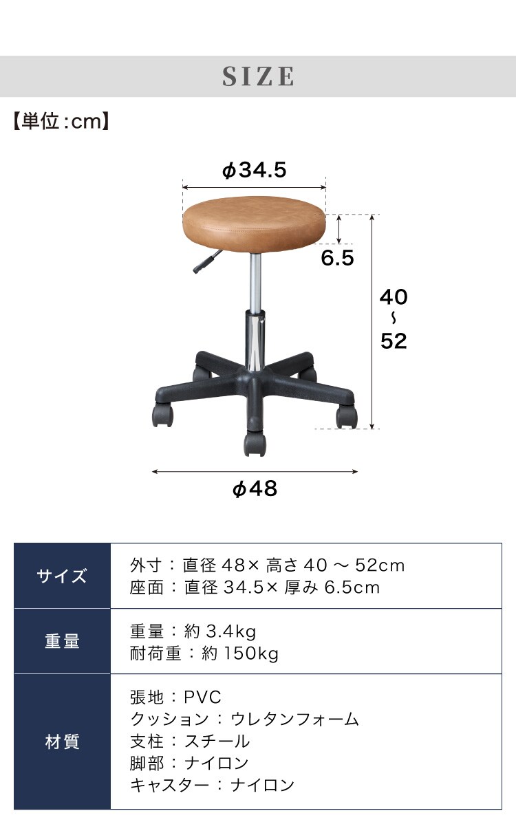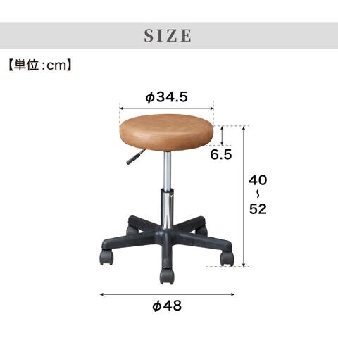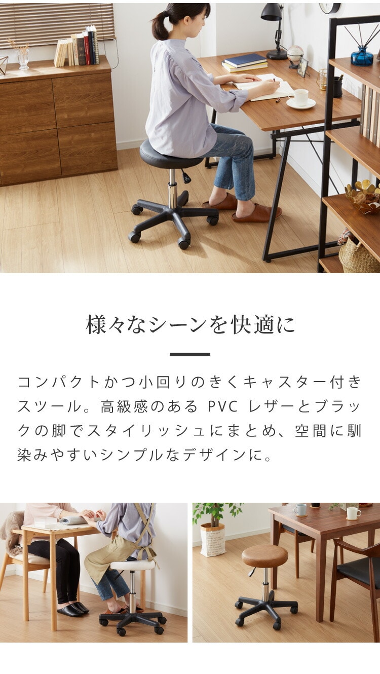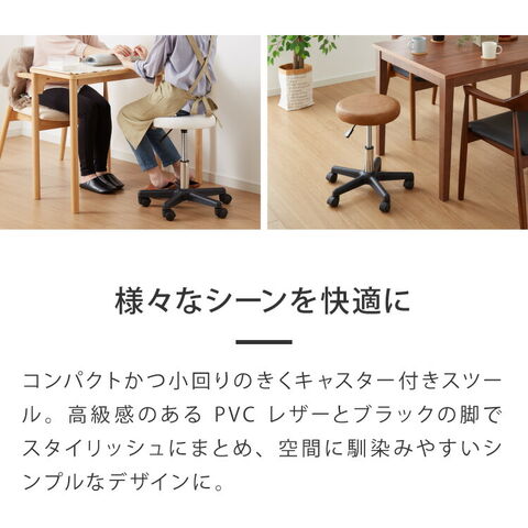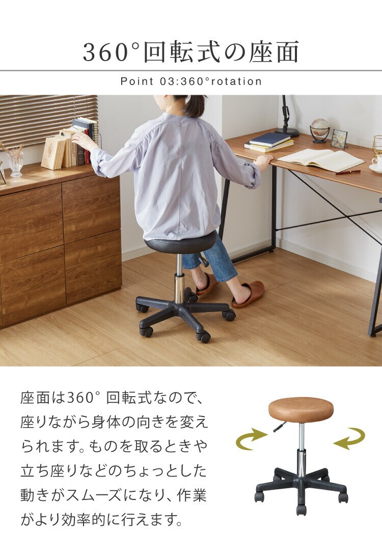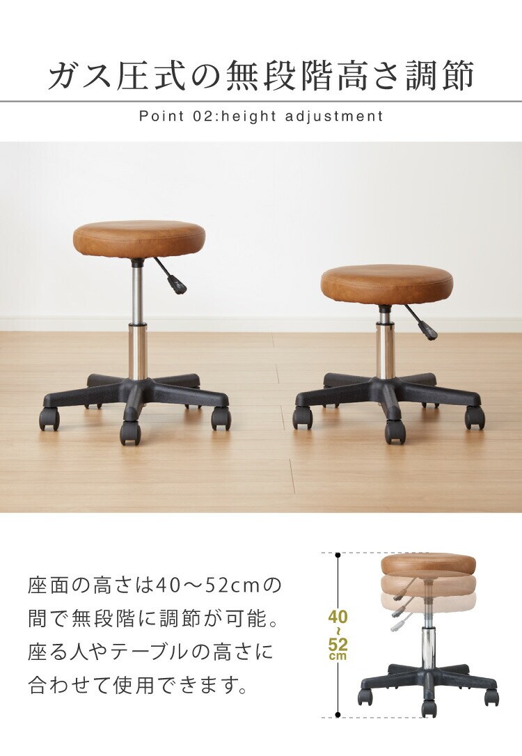 ワーキングチェア、ラウンドスツール、白、黒、茶色、回転、インテリア、デスクチェア、ガス圧昇降、ガス圧、昇降式、キッチン、事務、エステ、エステサロン、厚手クッション、サロンワーク、在宅、在宅ワーク、テレワーク、リモート、リモートワーク、キャスター付、コンパクトチェア、施術、診察