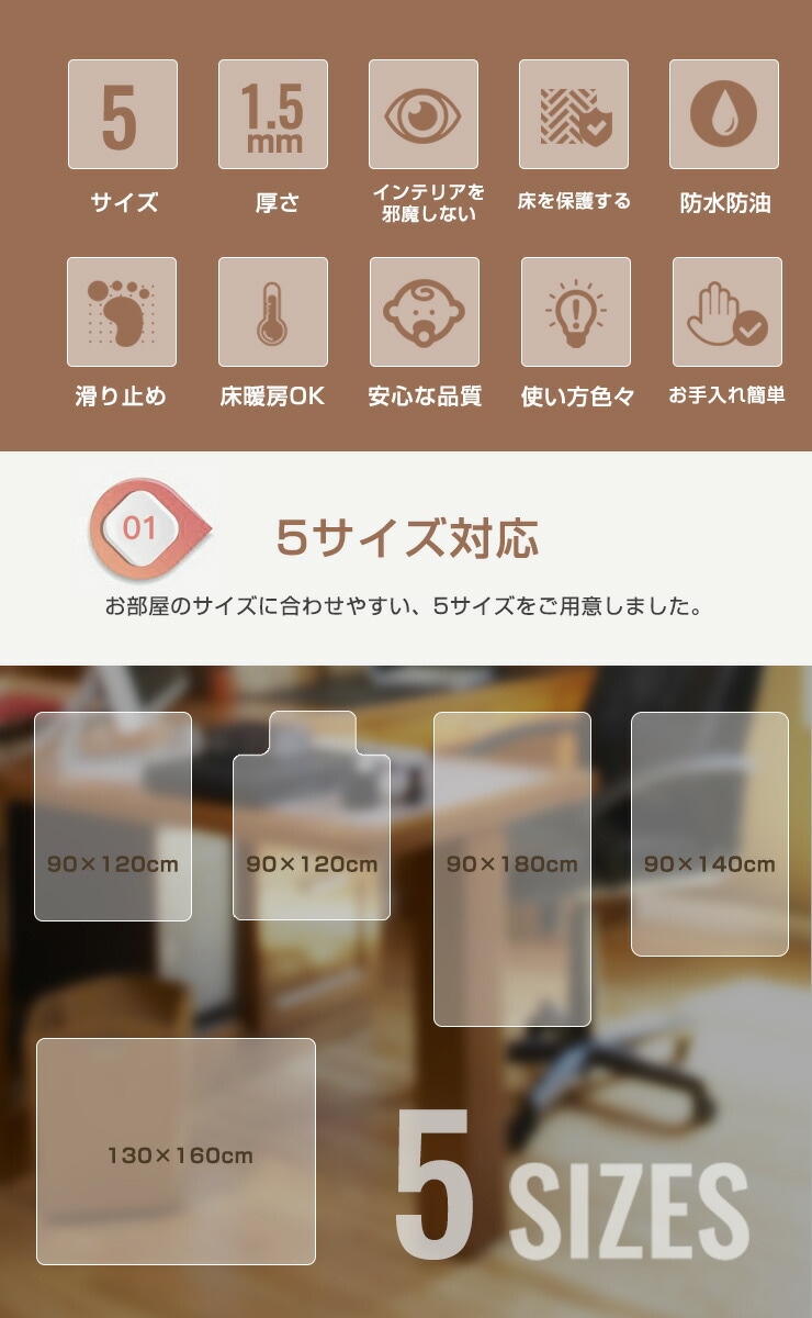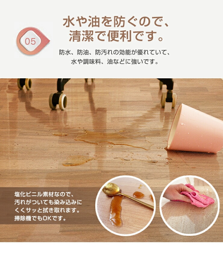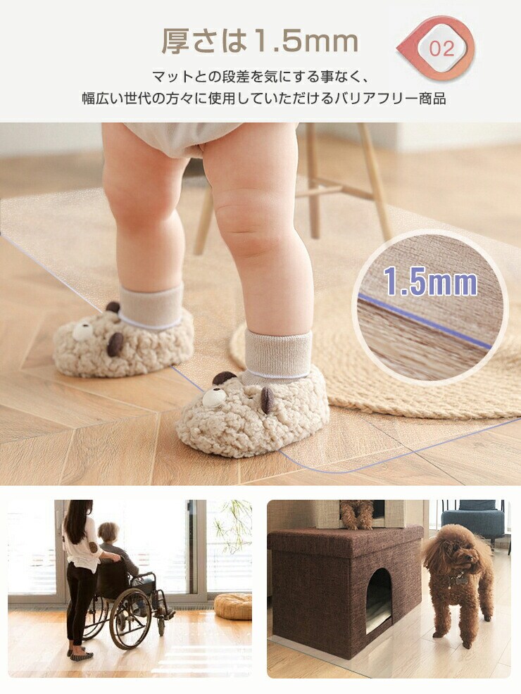 汚れてもサッと拭ける!お手入れ簡単、クリア、キッチンマット、おしゃれ、床暖房、テーブルマット、おしゃれ、厚さ1.5mm、大判、クリアタイプ、キッチンクリアマット、防水、床暖房対応、抗菌、長方形、フローリング、保護シート、保護マット、ダイニングマット、キズ防止、廊下マット、ペットマット、防音、防臭、韓国、韓国インテリア、廊下敷マット、階段マット、置くだけ、置くだけ吸着、吸着マット、タイルマット、おくだけタイルマット、キャスター用、プレゼント、凸形、ソフトタイプ