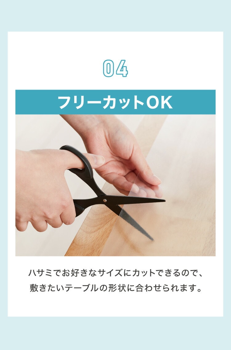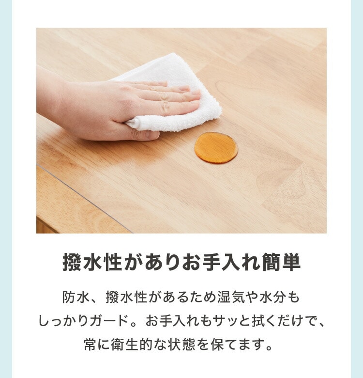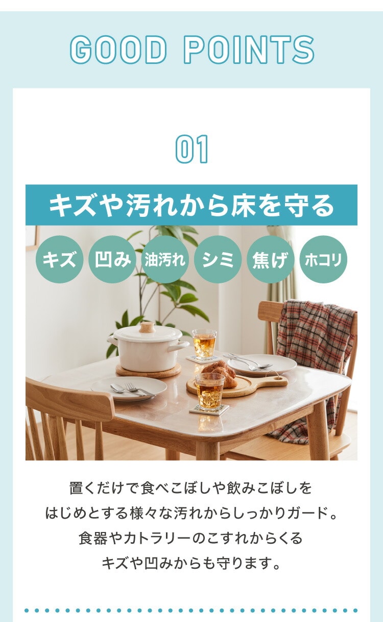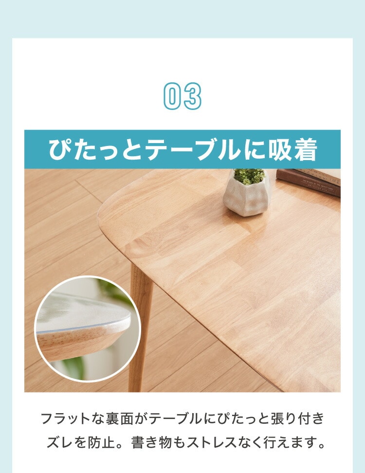 ・透明仕様でテーブルのデザインを活かしながら、傷や汚れをしっかりガード