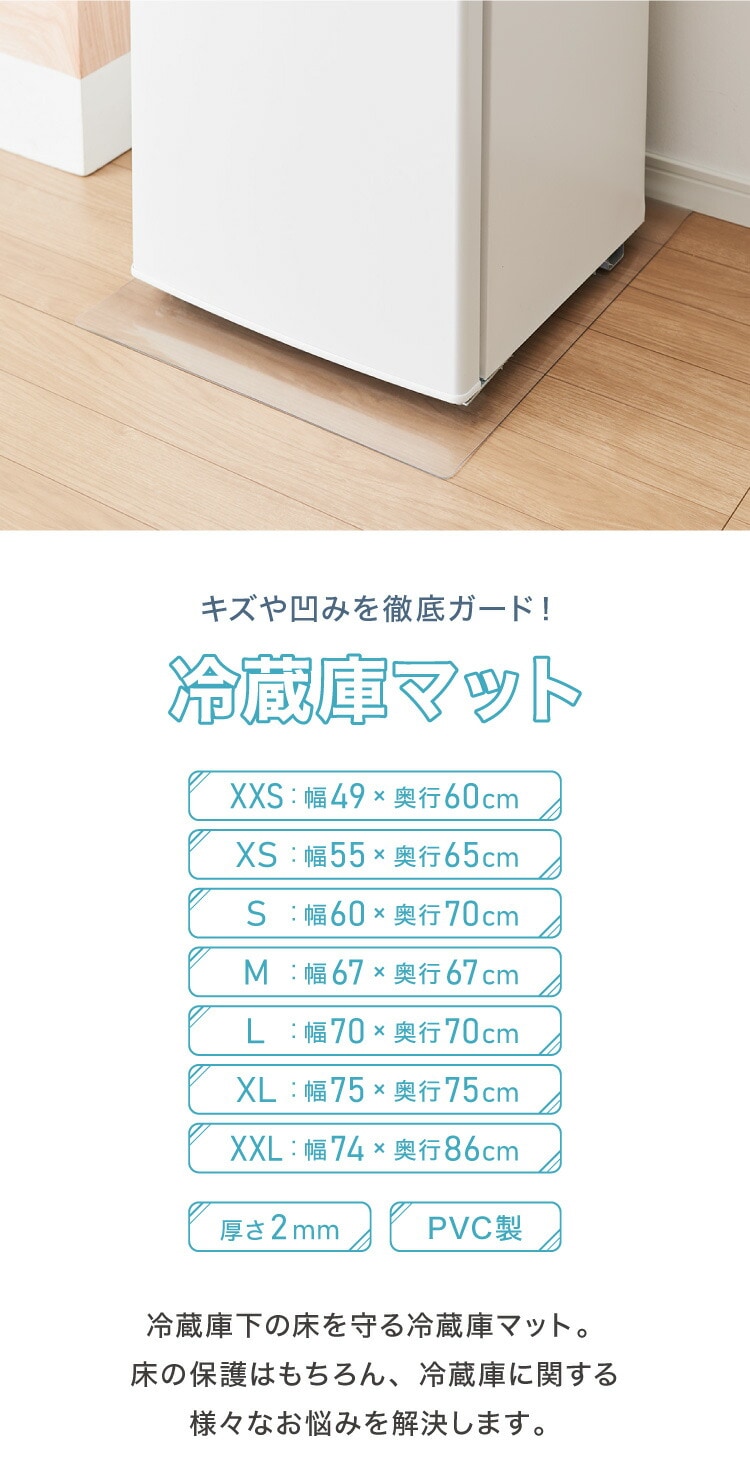 冷蔵庫マット PVC 2mm厚 XXS~XXL フリーカット 防カビ 床保護 キズ防止 防汚 撥水 防水 床暖房対応 200L~600L冷蔵庫対応 冷蔵庫パネル PVCマット【送料無料】