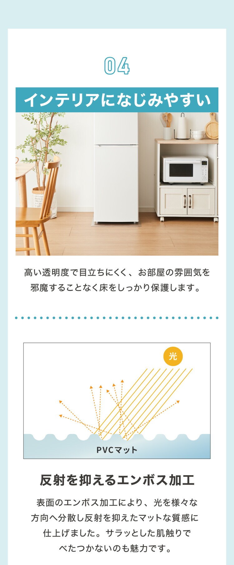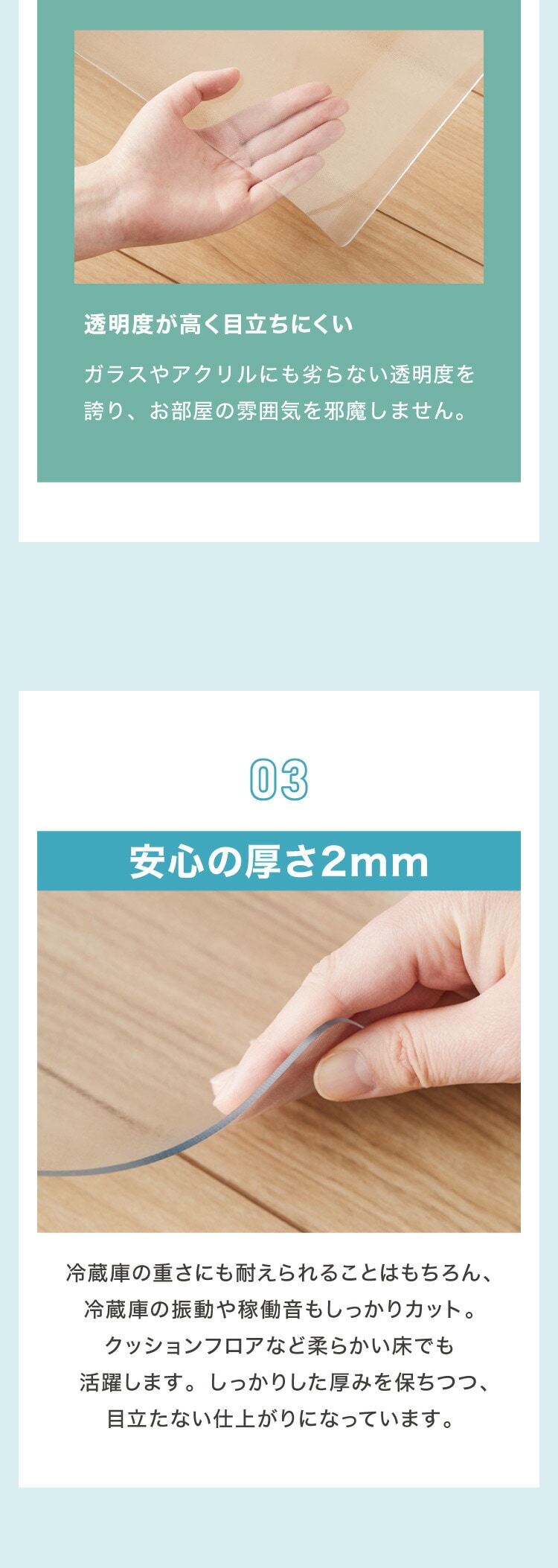 保護パネル、冷蔵庫下マット、クリアマット、クリアパネル、防水マット、防汚マット、透明マット、クリアマット、滑り止めマット、耐熱マット、床保護マット、床キズ防止、床汚れ防止、結露対策、カビ対策、フローリング保護、お手入れ簡単、薄型、目立たない、軽量マット、置くだけ簡単、カット可能