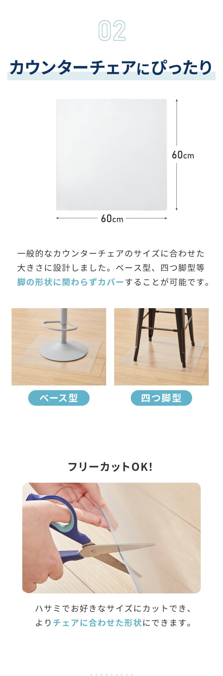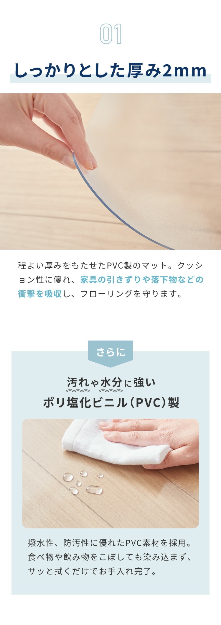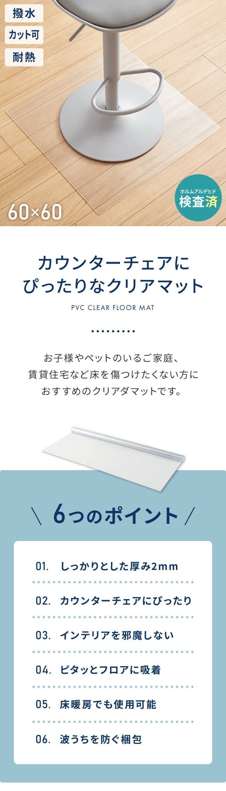 チェアマット、透明、クリア、厚さ、2mm、60cm、マット、角丸、フリーカット、無色、いすマット、フローリング、床保護マット、フロアシート、キズ防止、保護シート、保護マット、キズ防止、オフィスマット、クリアマット、キッチンマット、大判、フローリング、ズレにくい