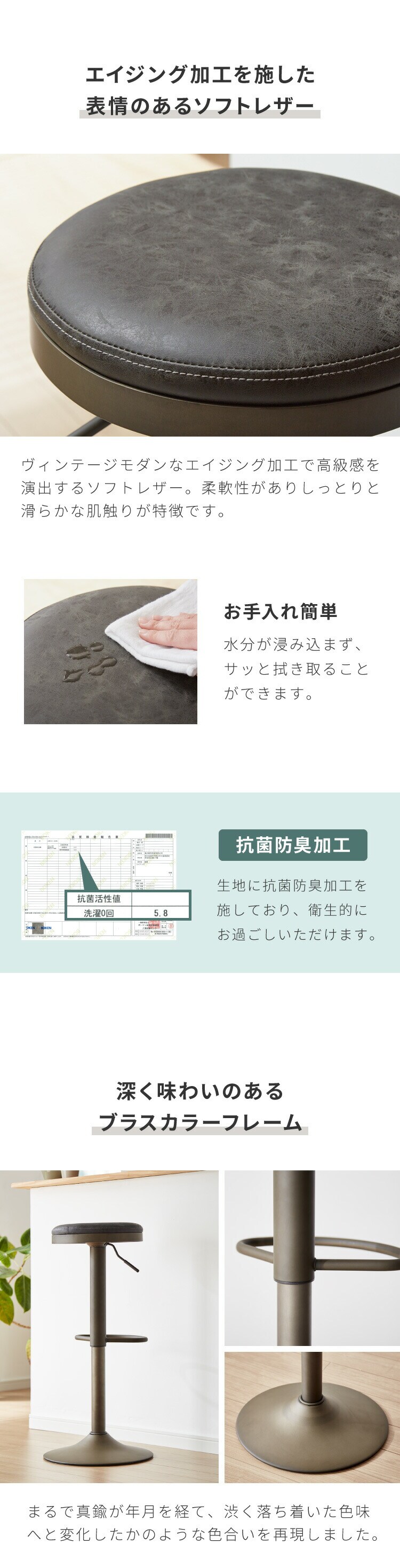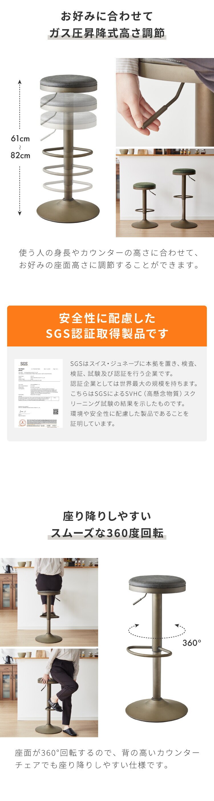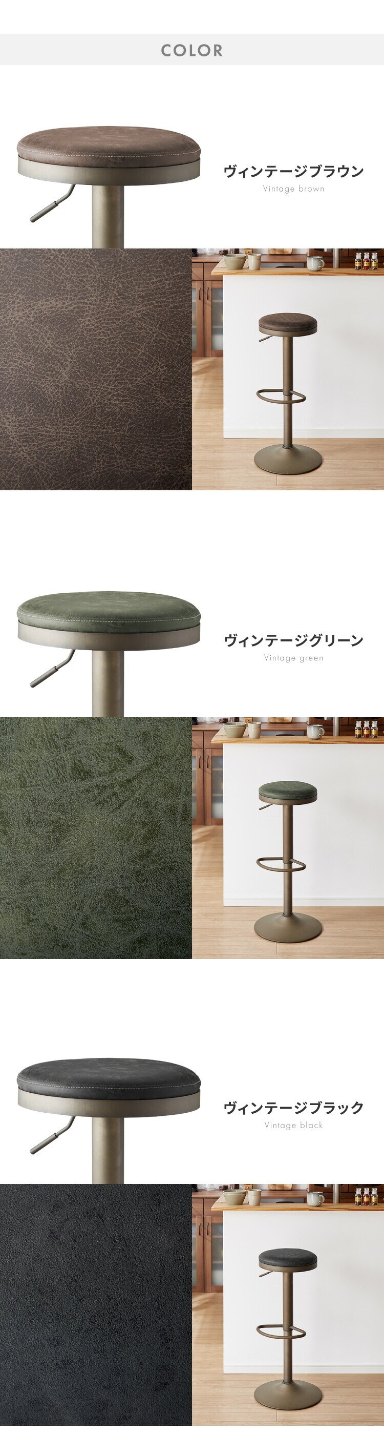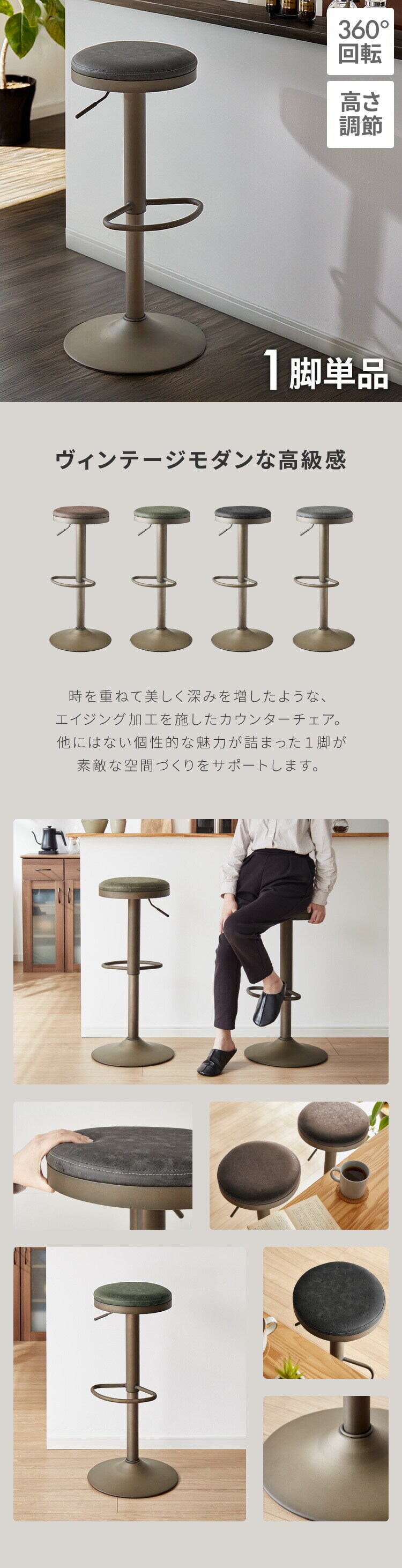 カウンターチェア、ガス圧式、回転式、ガス圧昇降、背もたれ付き、キッチンスツール、カフェチェア、ヴィンテージ、レザー、レトロ、モダン、椅子、イス、チェア、スツール、ミッドセンチュリー、韓国、北欧、オフィス、店舗、カフェ、ダイニング、高級感