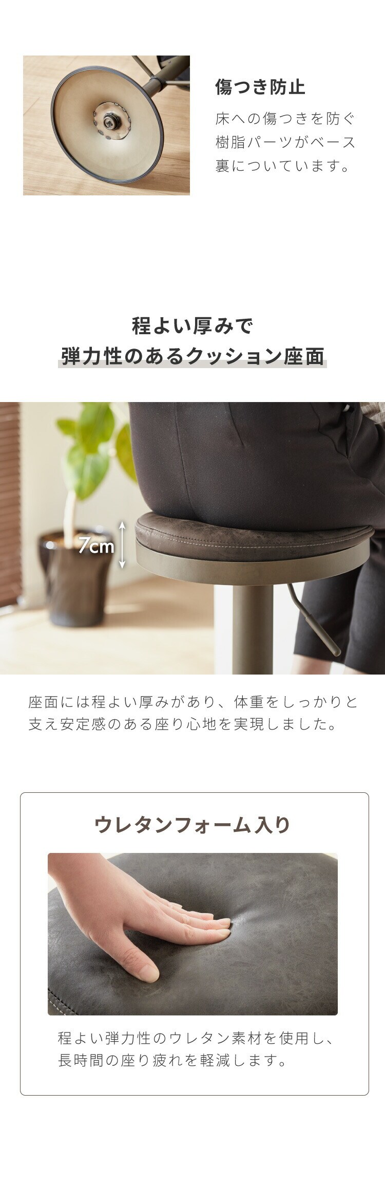 ・座り心地の良いクッション座面