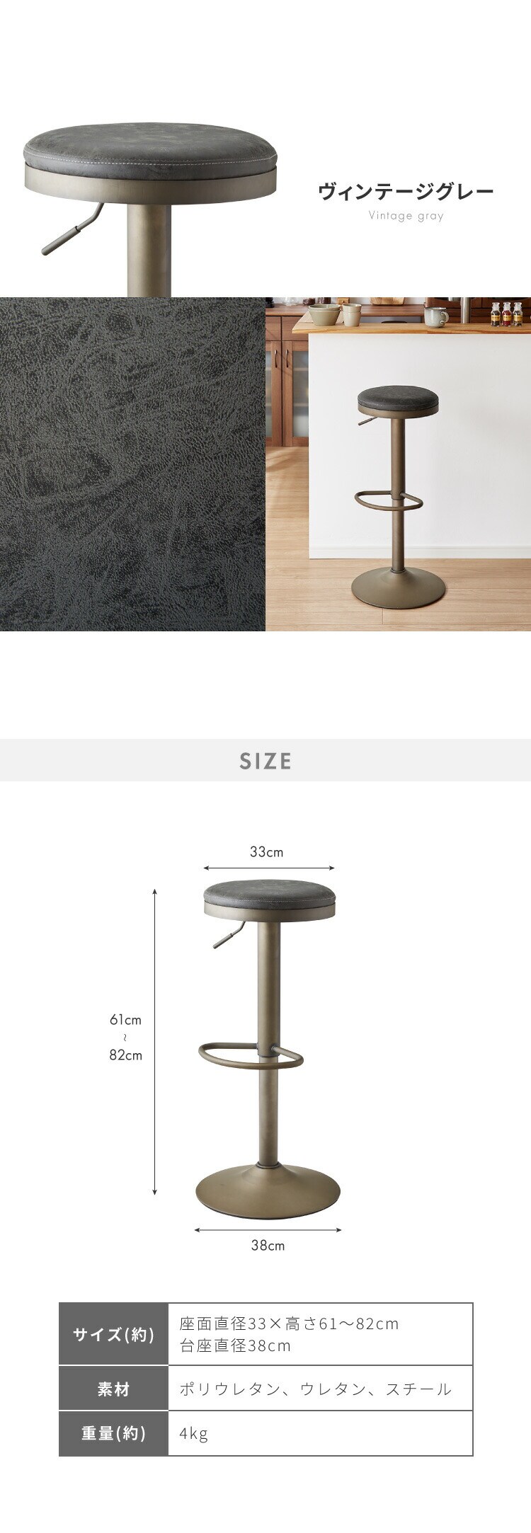 座面直径33×高さ61~82cm