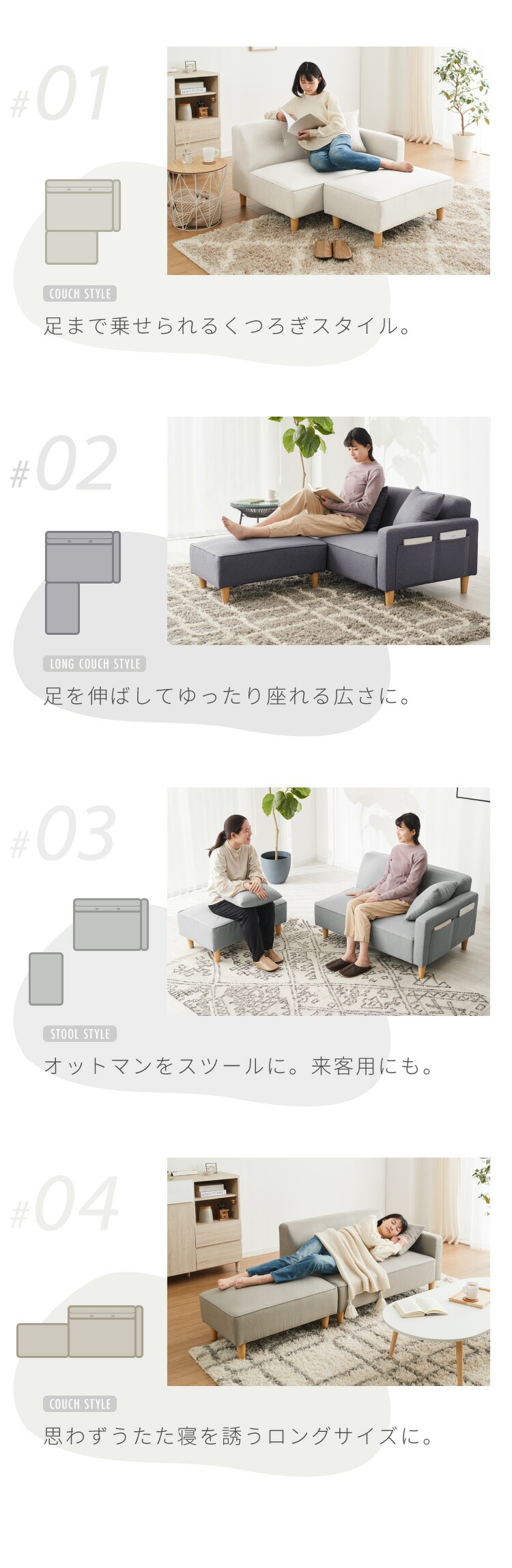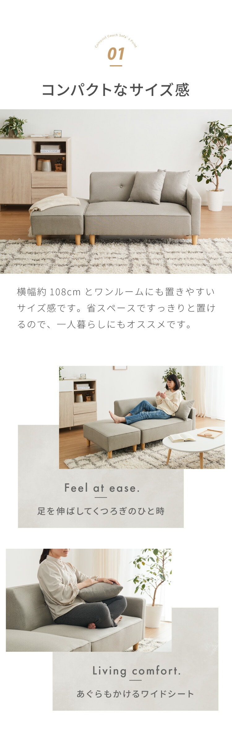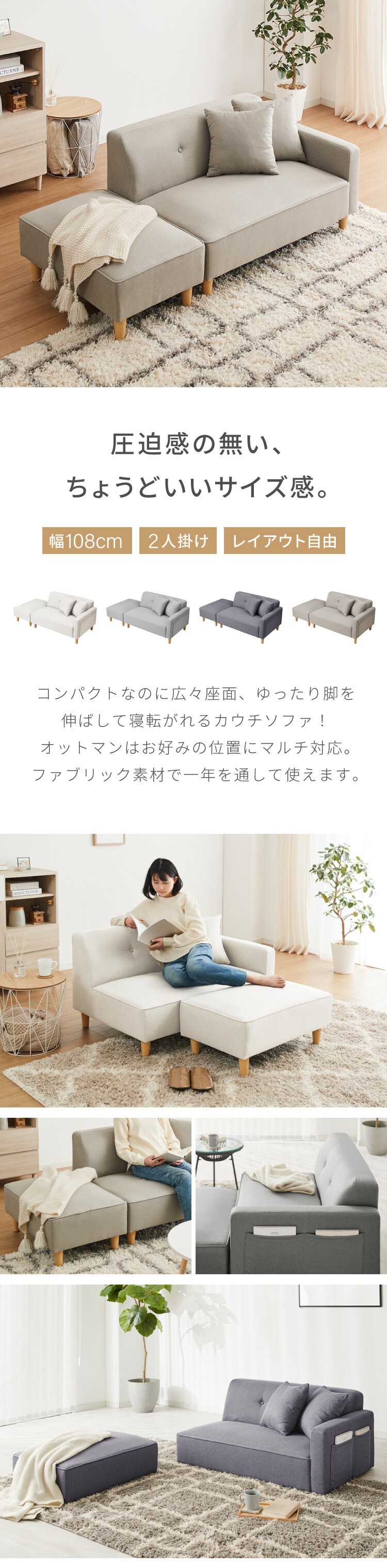 ・コンパクトなのに広々座面、ゆったり脚を伸ばして寝転がれるカウチソファ!
