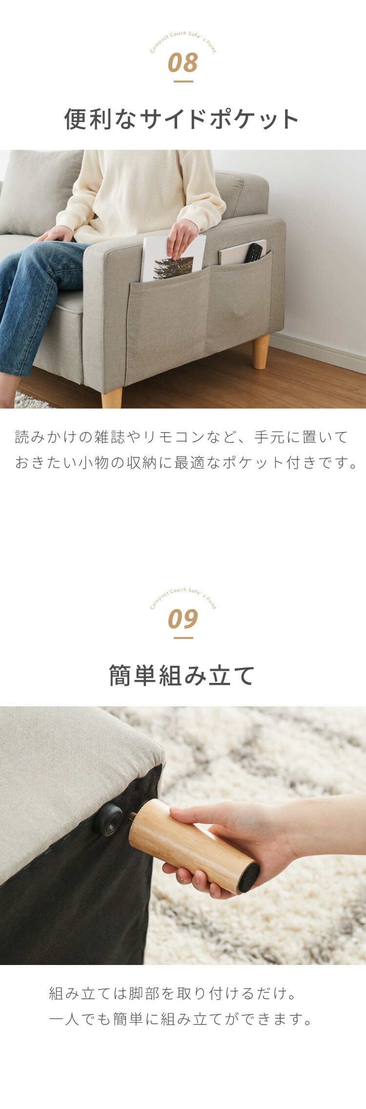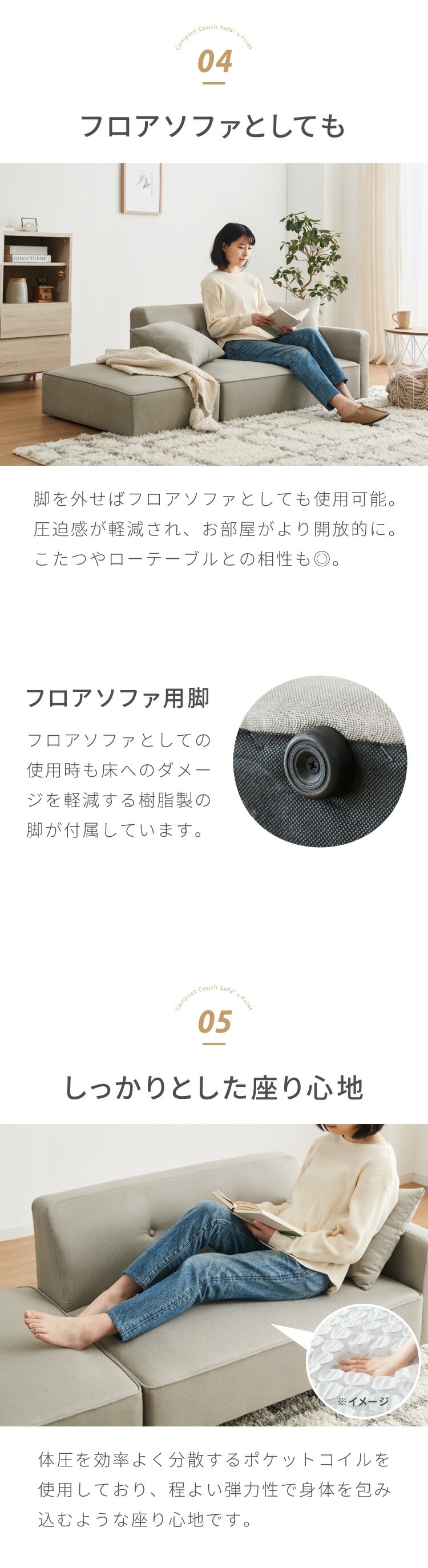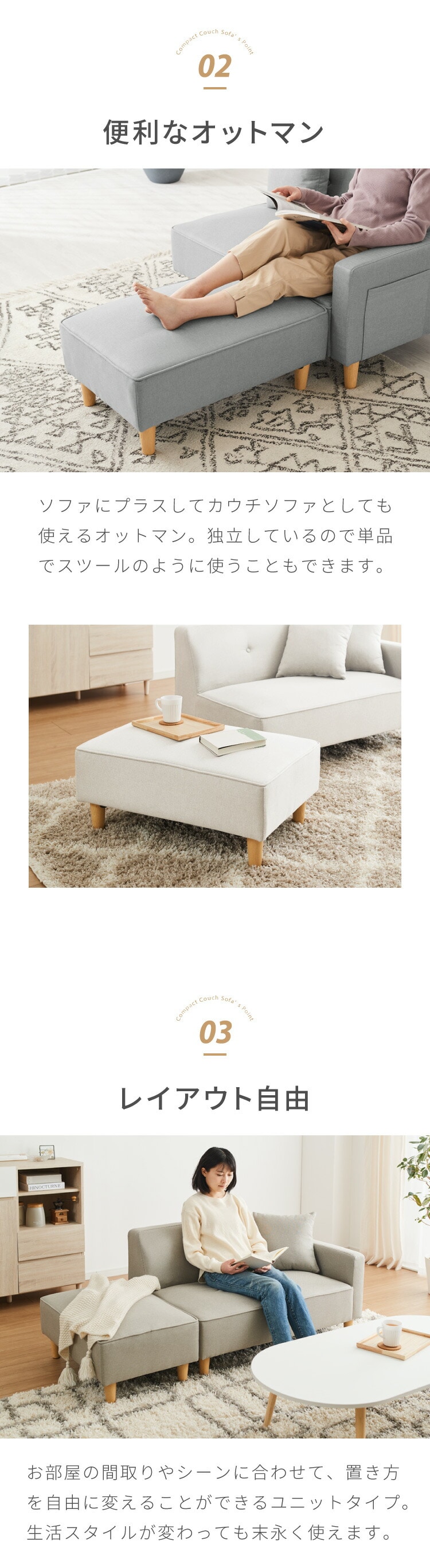 ・コンパクトなのに広々座面、ゆったり脚を伸ばして寝転がれるカウチソファ!