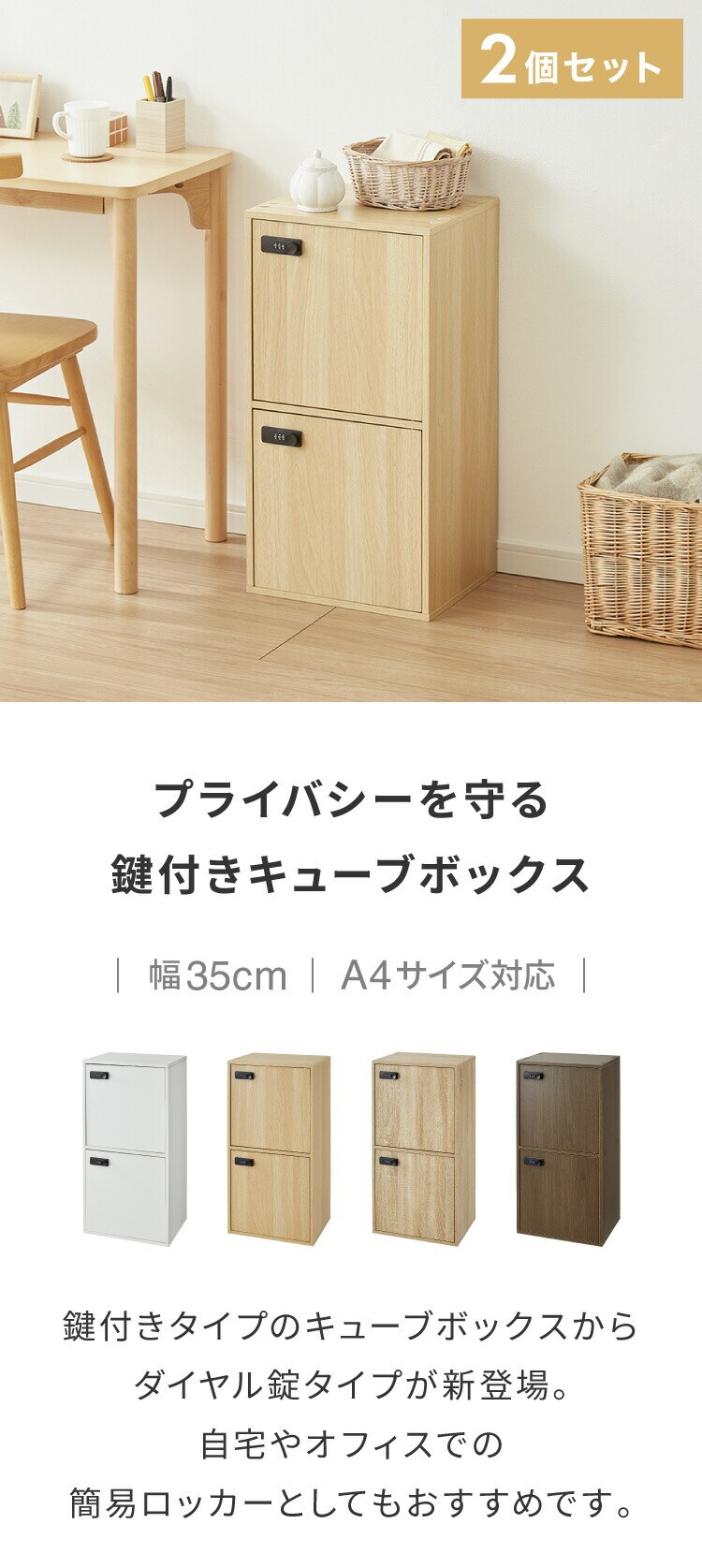 カラーボックス 2段 A4 2個セット 木目 鍵付き 扉付き 幅35cm レイアウト自由自在 ダイヤル 収納 収納ボックス 整理整頓 カラーボックス2段 A4サイズ 本棚 ラック 収納ラック 鍵付きラック【送料無料】