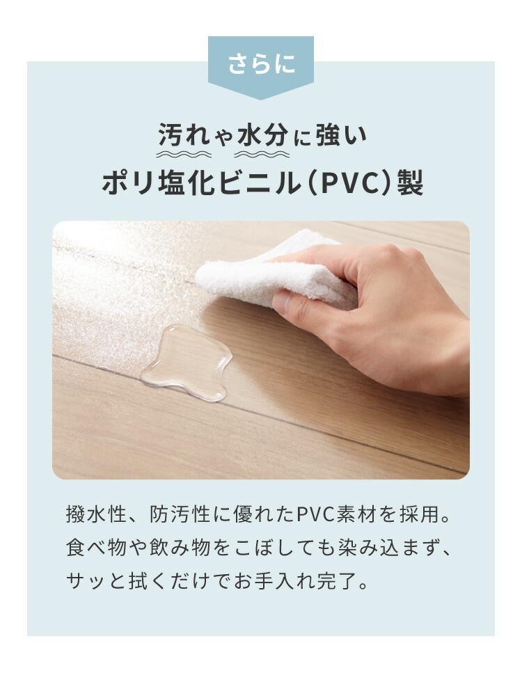 ・撥水性のあるPVC製で汚れてもサッと拭くだけでお手入れ完了