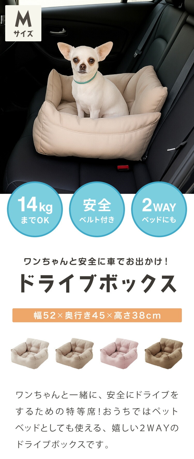ドライブボックス 犬 車用 Mサイズ ドライブベッド キャリーバッグ ドライブシート 小型犬 中型犬 ペットベッド カーベッド カドラー 助手席 安全 お散歩 お出かけ 移動 ドライブ ボックス ベッド 飛び出し防止【送料無料】