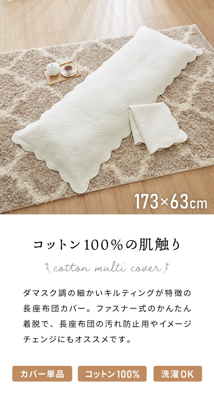 長座布団カバー ロング 洗える 綿100% 173×63cm シンプル カバー ごろ寝マット ごろ寝クッション 長座布団 マット クッション 座布団 アイボリー 北欧 綿 コットン コットン100%【送料無料】