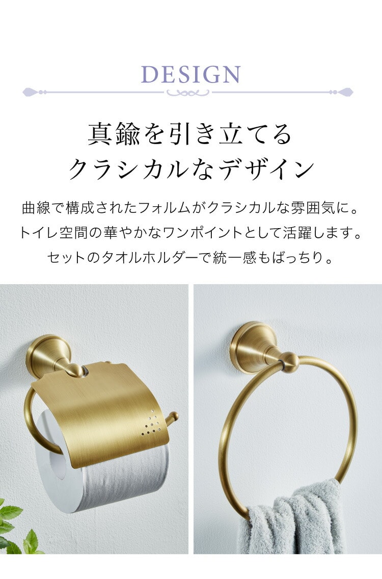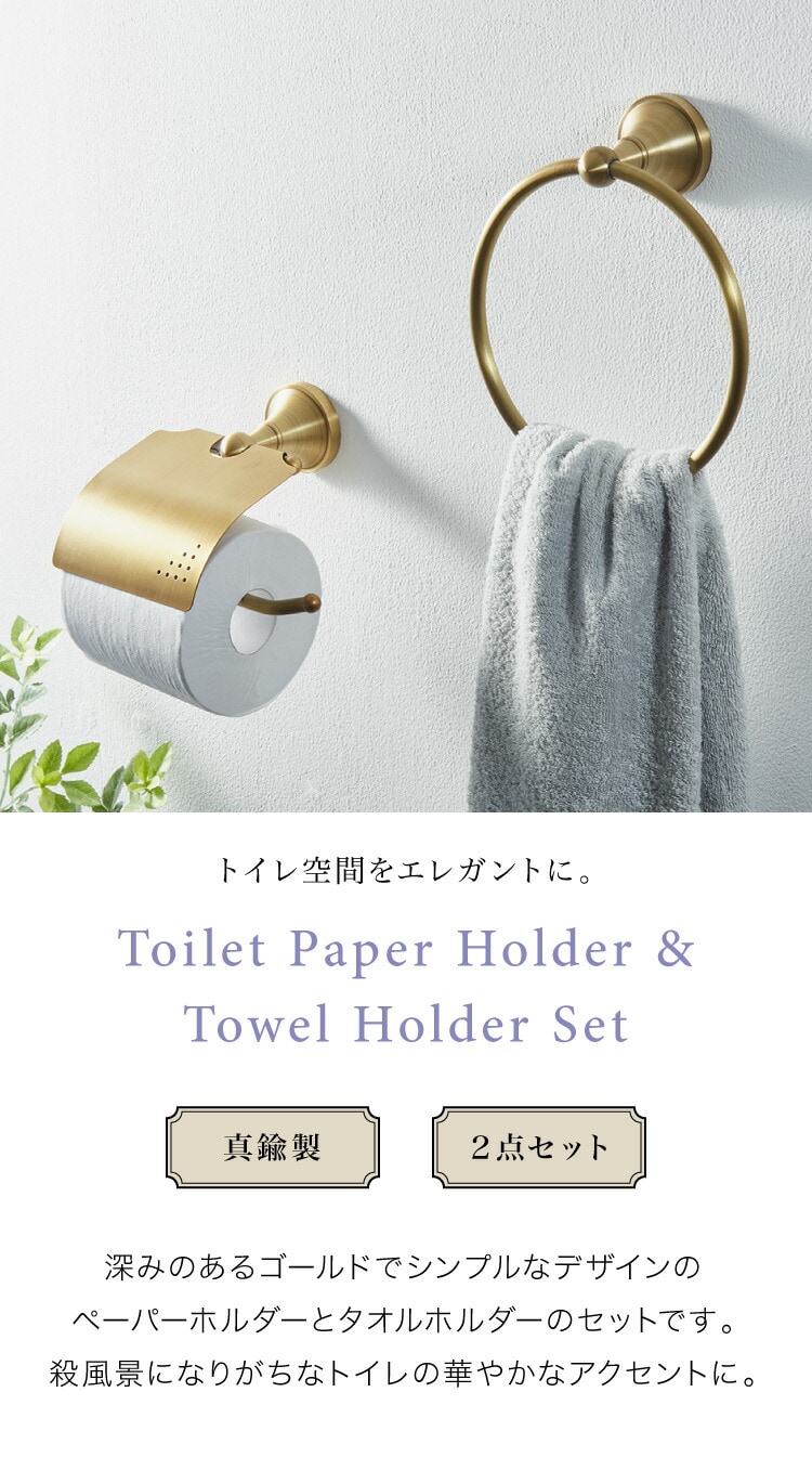 トイレットペーパーホルダー タオルハンガー セット 真鍮 おしゃれ ゴールド トイレ タオル掛け リノベーション DIY クラシック 真鍮製 シンプル カバー トイレットペーパー ホルダー【送料無料】