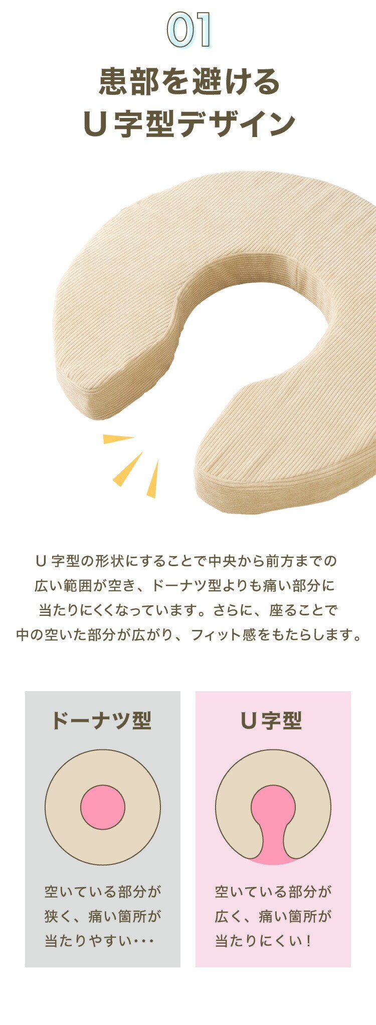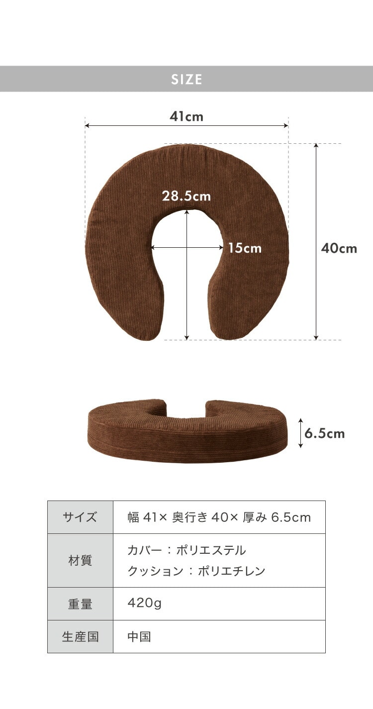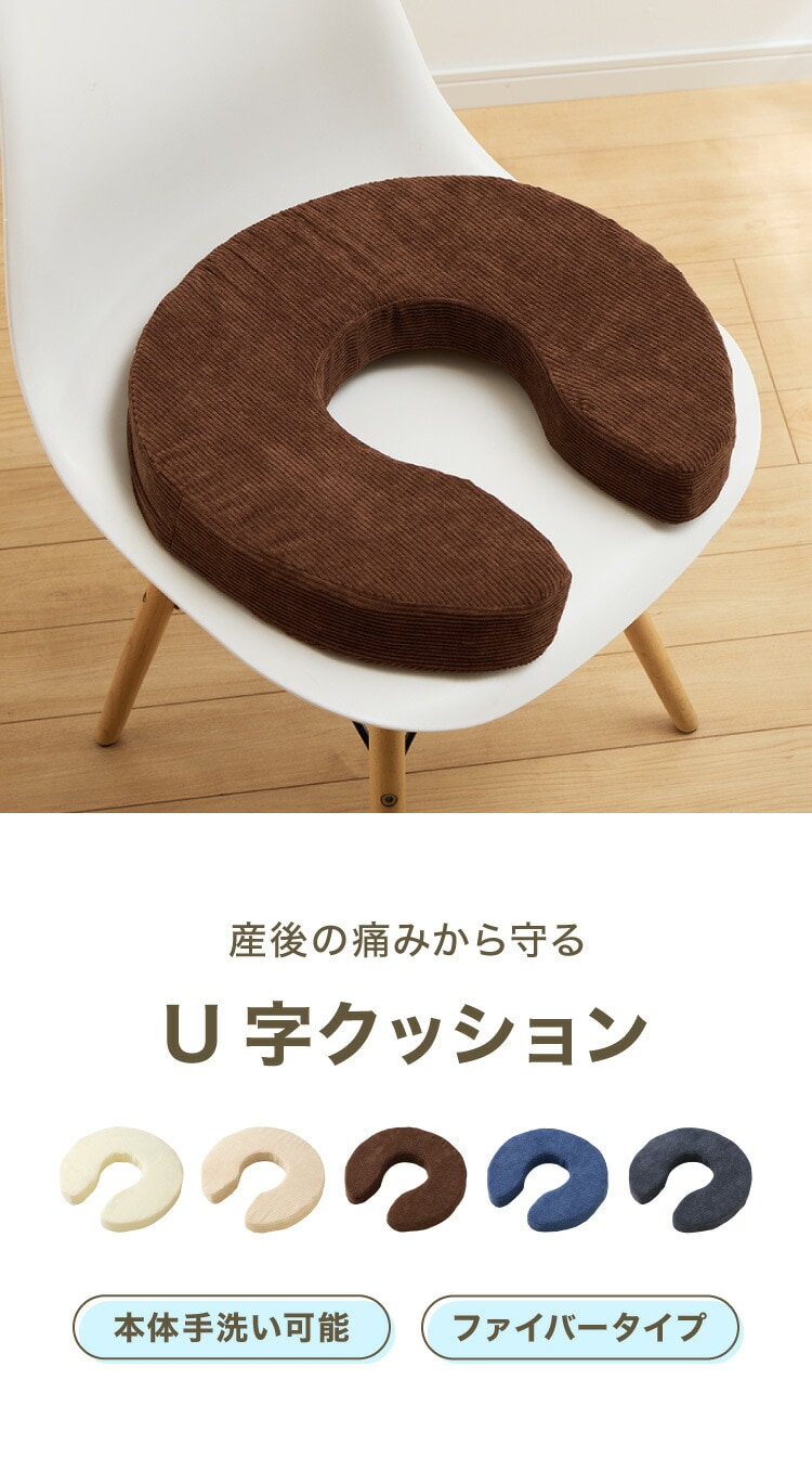 U字クッション 産後 3Dファイバー 洗える U字 コーデュロイ ファイバー 抗菌 防臭 厚手 極厚 円座 術後 手術後 痔 痛み対策 座布団 高齢者 円座クッション 授乳クッション マタニティクッション 無地【送料無料】