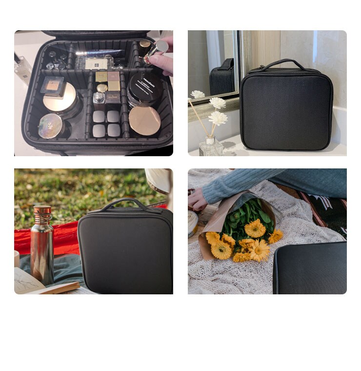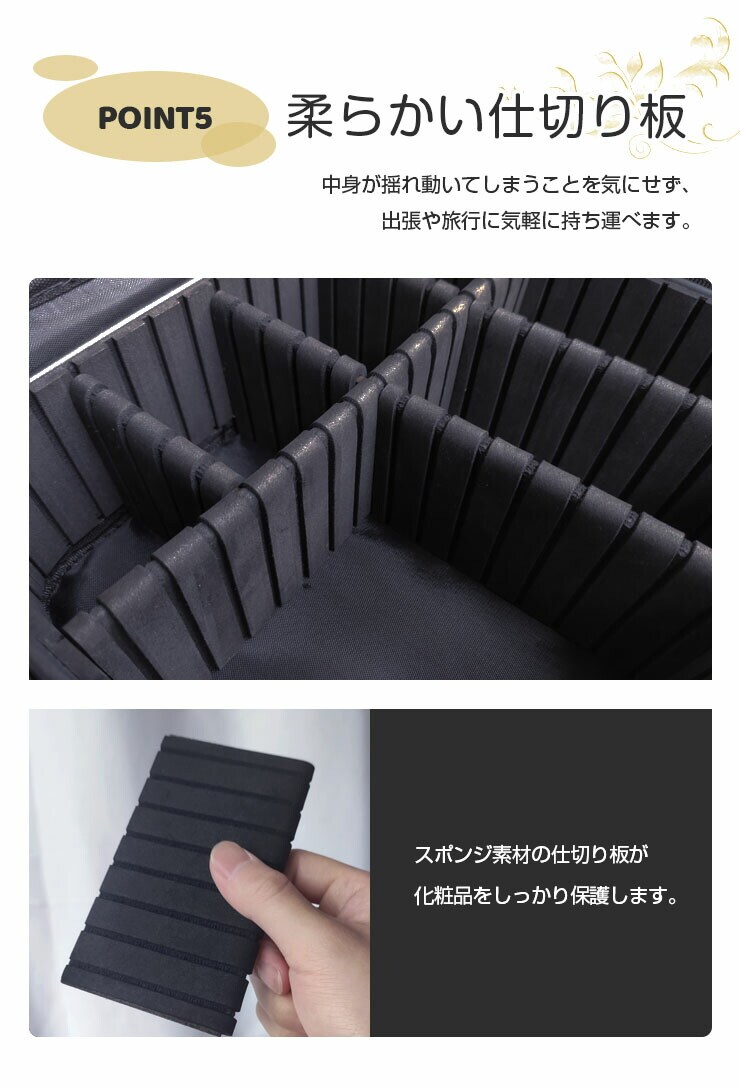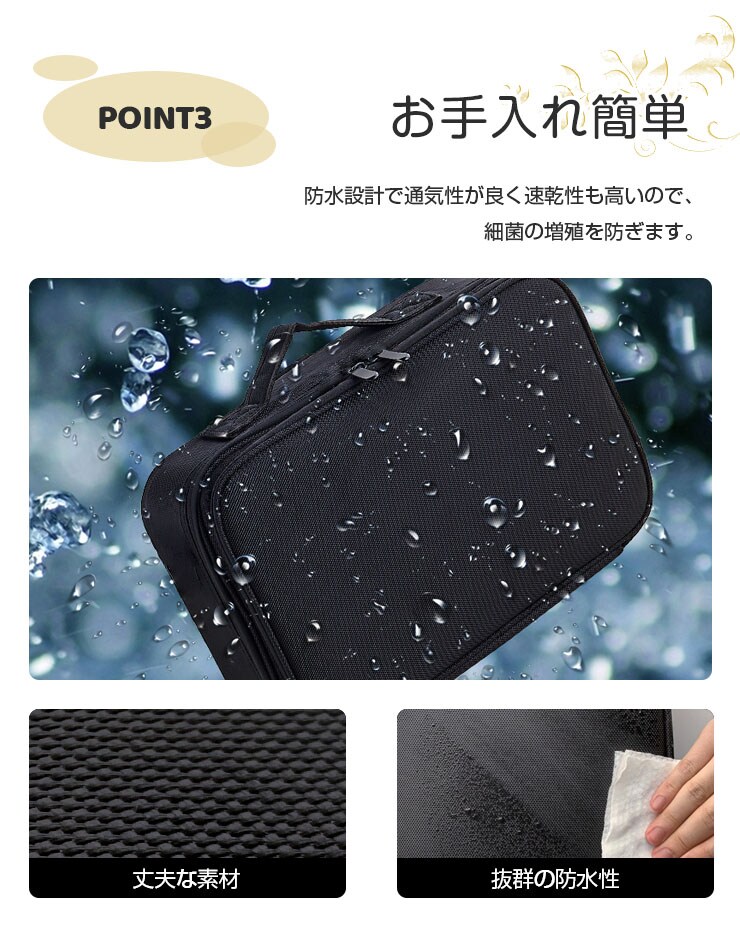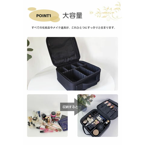 メイクボックス、大容量、ナイロン、お手入れ簡単、仕切り、ブラシポケット、持ち運び、ブラック、洗面所、寝室、ドレッサー、旅行、シンプル、化粧品ボックス、化粧ポーチ、小物入れ、メイク道具、コスメケース、コスメボックス、収納、