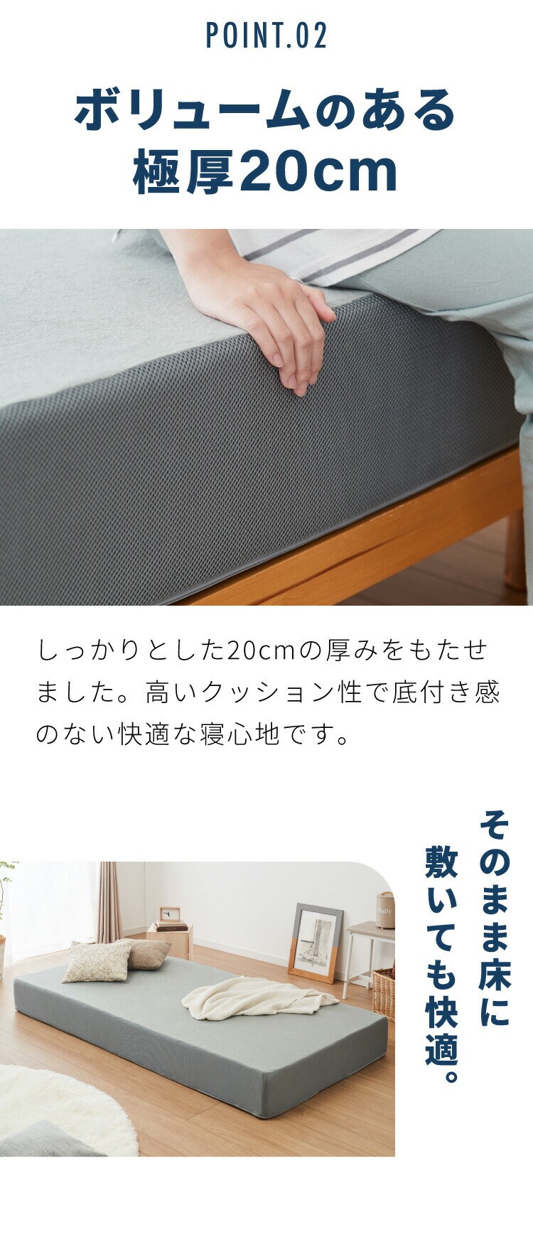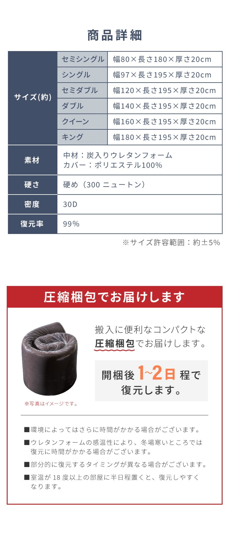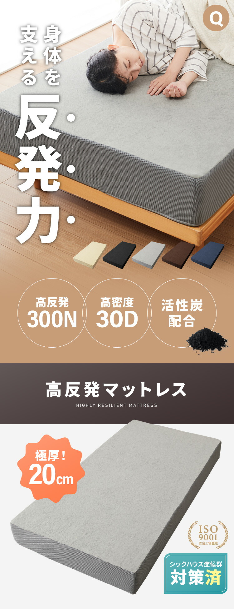 極厚マットレス、厚さ20cm、Q、160×195、ウレタンマットレス、高密度ウレタン、高反発ウレタン、炭入りマットレス、フラットウレタン、両面仕様カバー、パイル地、メッシュ生地、ホテル、民泊、一人暮らし、寮、学生寮、シックハウス対策、エコテックス、ISO9001、アイボリー、グレー、ブラウン、ネイビー、ブラック