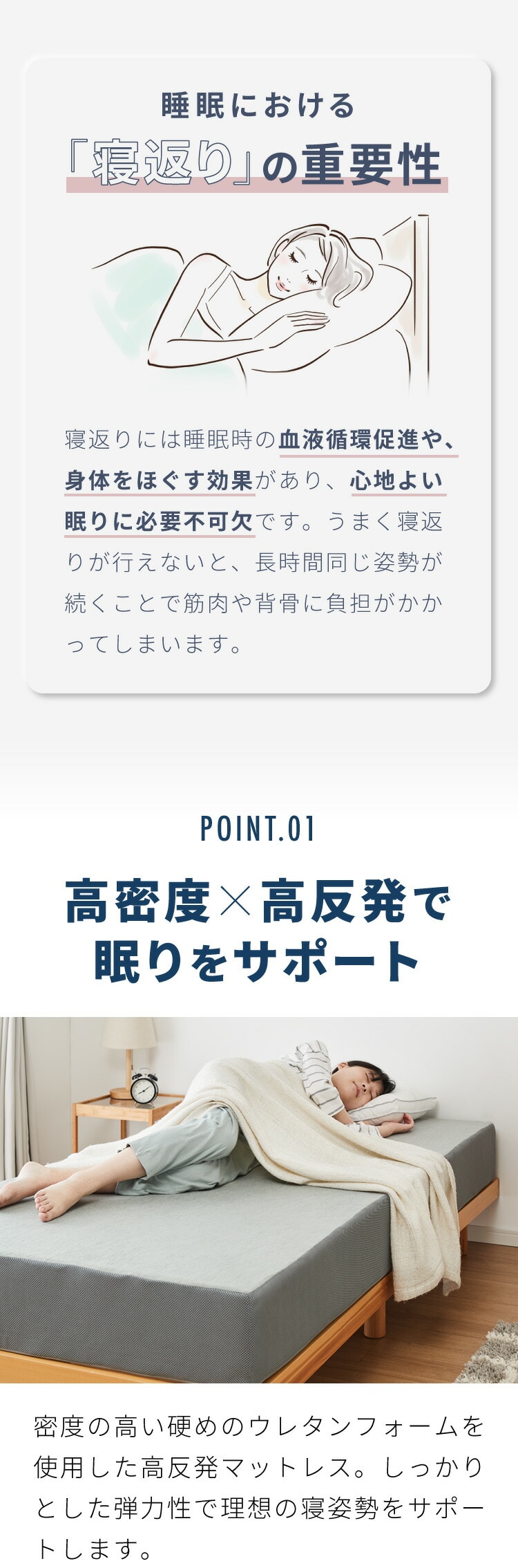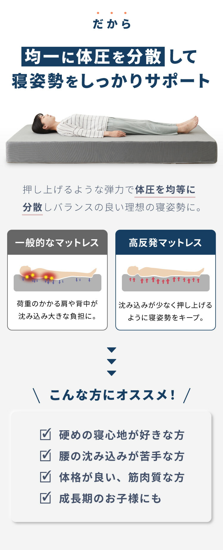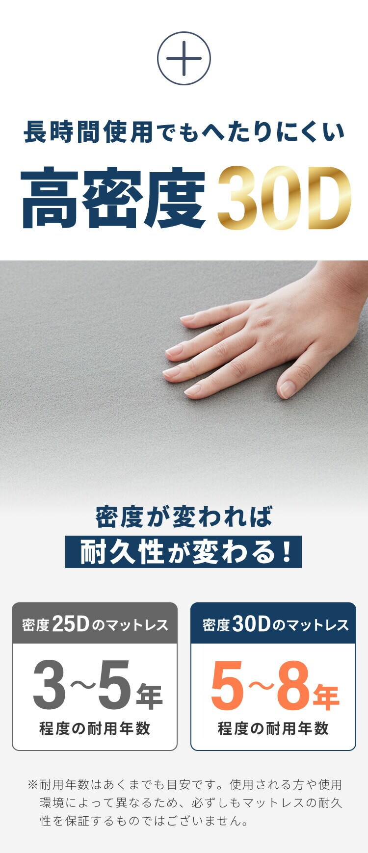・高密度30D×高反発300Nでしっかりとした硬めの寝心地