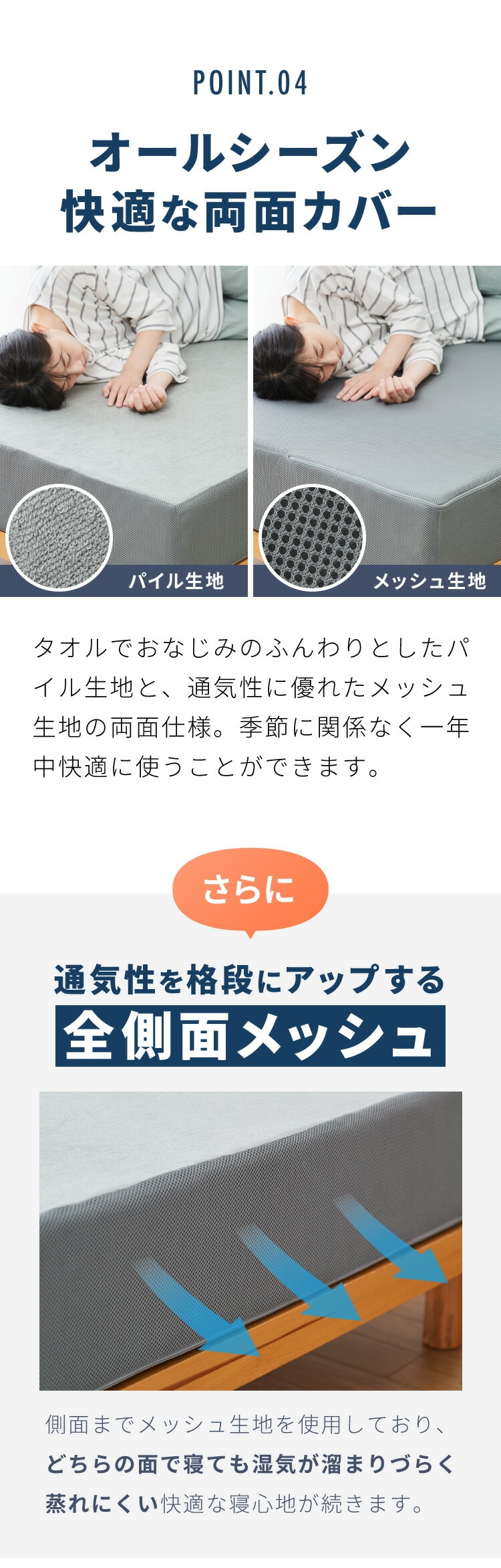 ・カバーはパイル生地とメッシュ生地の両面仕様