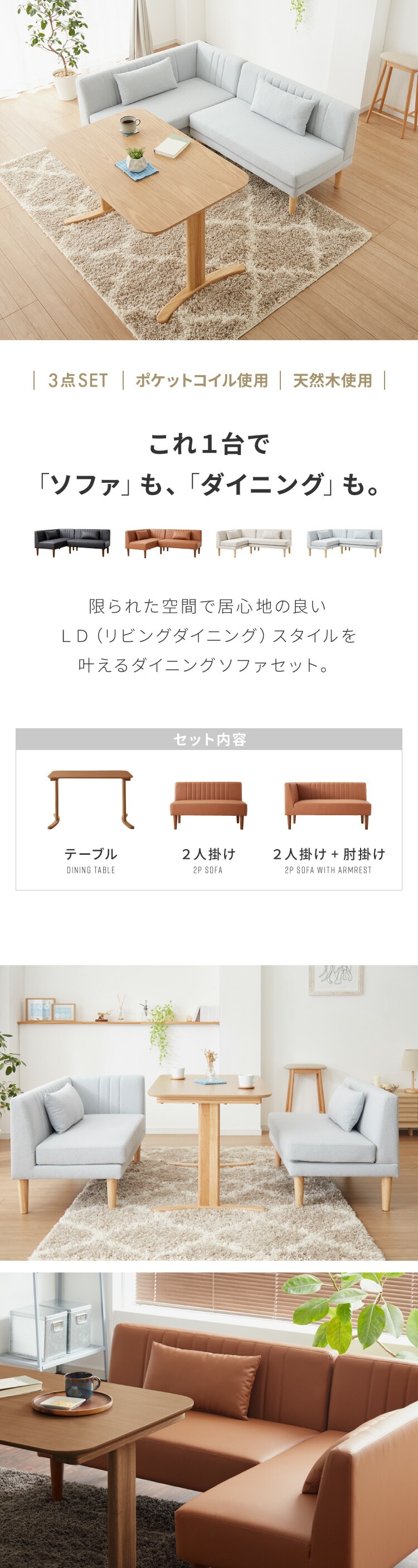 ダイニングセット 座面高39cm ゆったりダイニングチェア ダイニングテーブル3点セット 3人掛け 天然木 L時ダイニング ダイニングソファ ダイニングテーブル 幅110 リビングダイニング 北欧【送料無料】