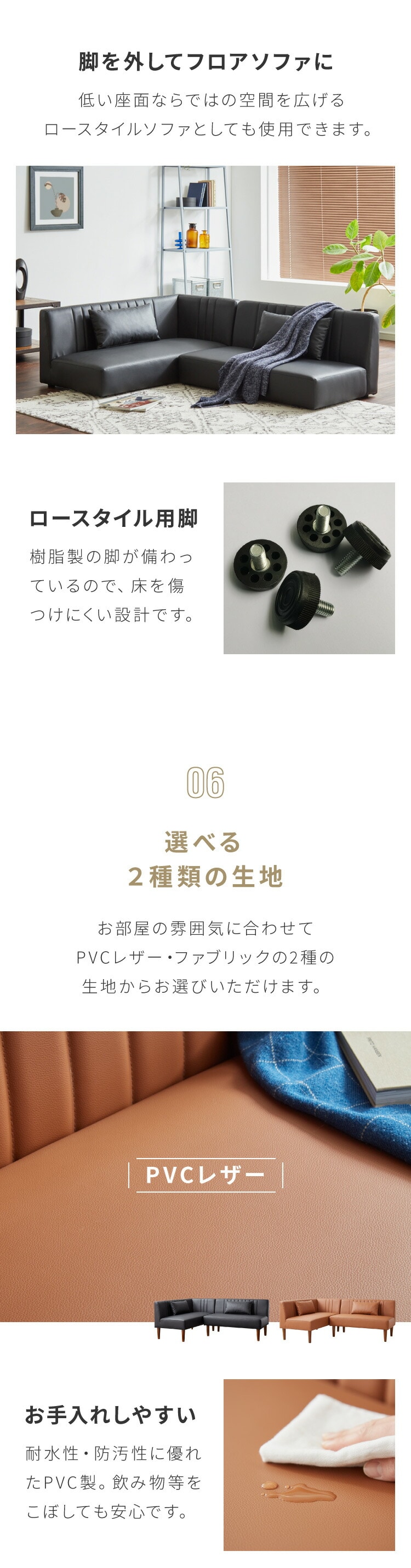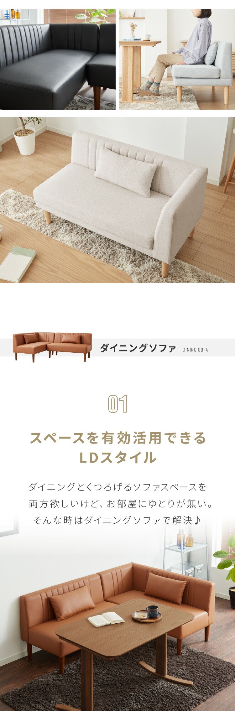 限られたスペースを有効活用できるリビングダイニングスタイルのL字ソファ。