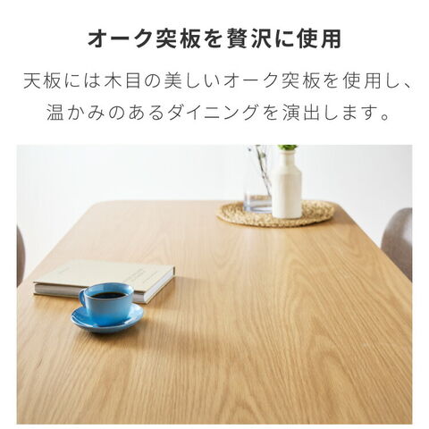 140×80cmの天板サイズは、4人でもゆったり使用できます。