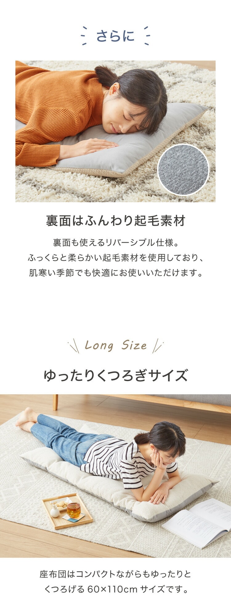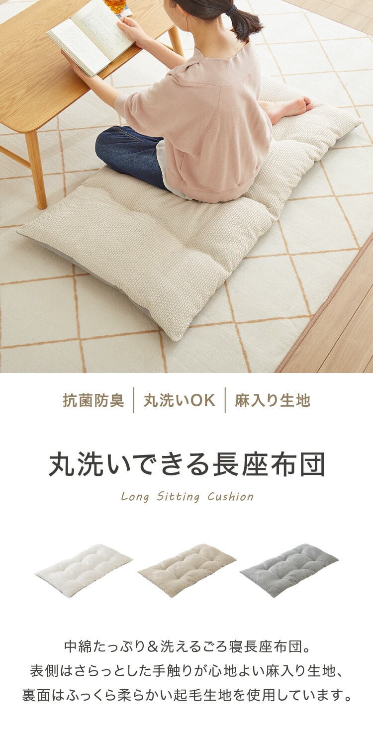 長座布団 抗菌 防臭 洗える 丸洗いOK ノンホルム リバーシブル 麻 60×110cm 一人暮らし おしゃれ シンプル お昼寝 ごろ寝マット ごろ寝 座布団 クッション マットロングクッション ごろ寝クッション【送料無料】