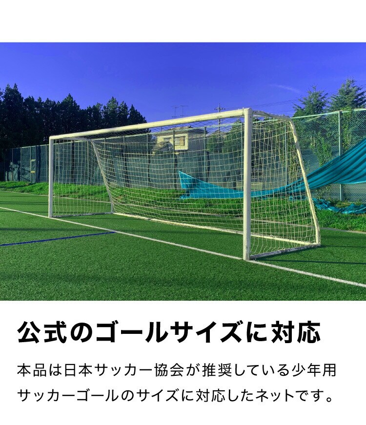 サッカーゴール、ネット、交換用、ネットのみ、張替、トレーニング、スポーツ、体育、学校、部活動、クラブチーム、ジュニアサッカー、少年サッカー、フットサル、四角目、網目、ネット、網、少年用、ジュニア用、8人制、11人制、サッカー、子供、大人