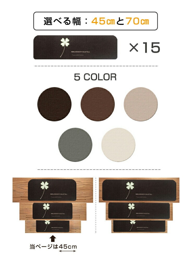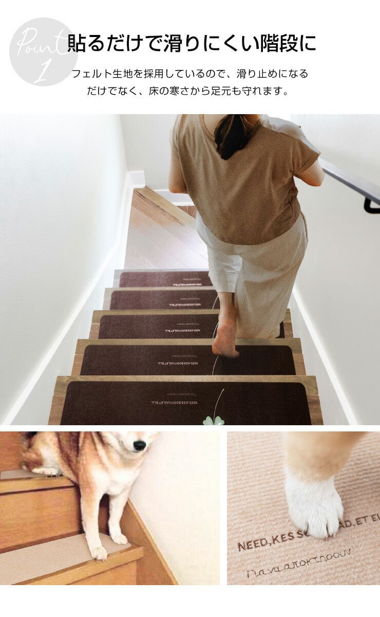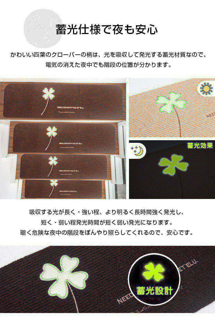 階段 滑り止めマット 幅45cm 15枚セット 蓄光 吸着 滑り止め 防音 夜光 傷防止 簡単設置 洗える 水洗い 転倒防止 冷え対策 ケガ防止 安全 騒音対策 ペット かわいい 階段マット 階段用マット 蓄光マット【送料無料】