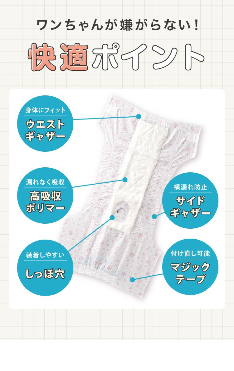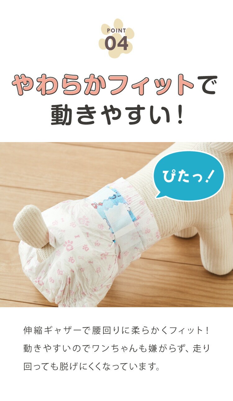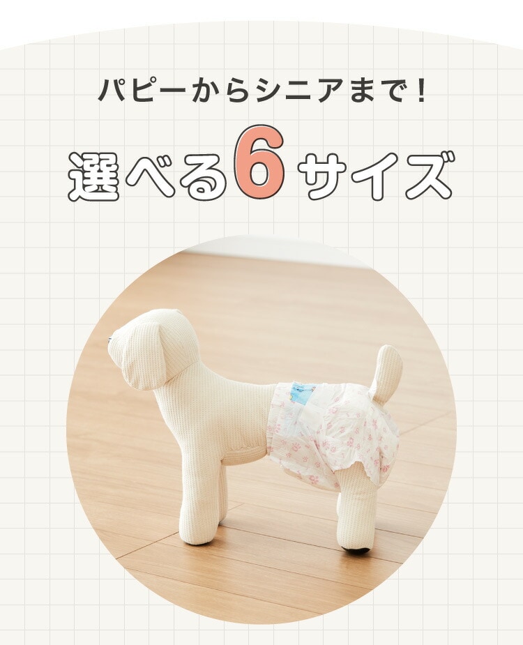 猫、おもらし、お留守番、ドライブ、ドッグカフェ、ペットカフェ、犬のおむつ、トイレタリー、サニタリー、蒸れにくい、吸水、吸収、快適、トイレトレーニング、ウエストテープ、オムツ、漏れにくい、シンプル、ずれにくい、シニア、パピー、臭わない、におわない