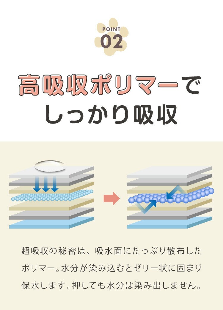 ・7層構造でしっかり吸収、漏れや水戻りを防ぎます。