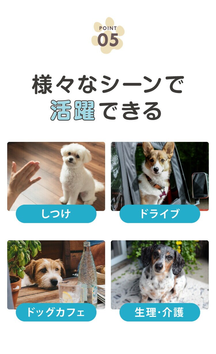 ・通気性抜群、伸縮ギャザーでわんちゃんが嫌がりにくく様々な場面で活躍。
