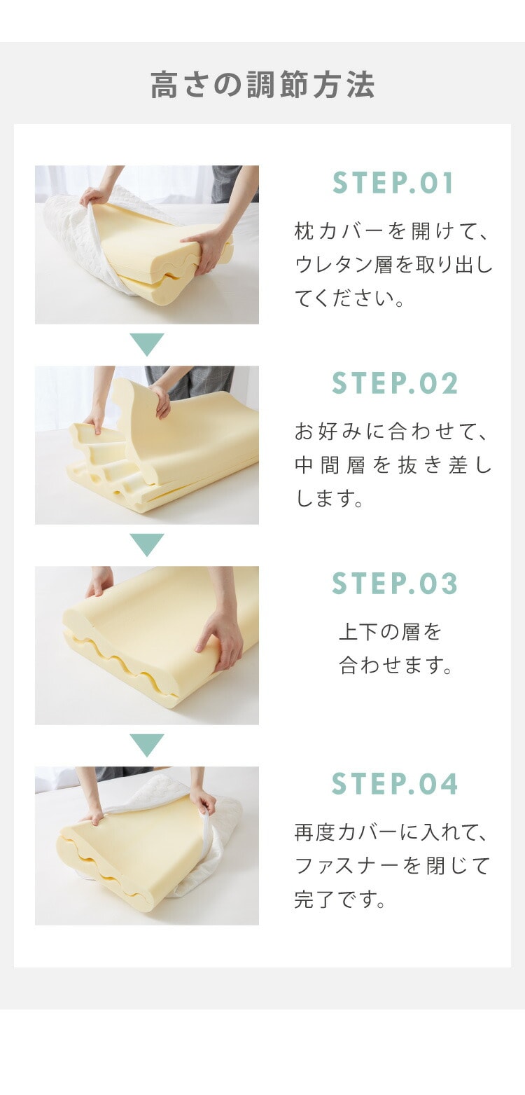低反発枕 枕 高さ調節 高さ調整 幅60cm ウレタン 選べる高さ 低反発 洗えるカバー ウレタン3層 寝室 安眠 快眠 睡眠 寝返り リラックス 新生活 横向き うつ伏せ 仰向け 肩こり 首こり まくら【送料無料】
