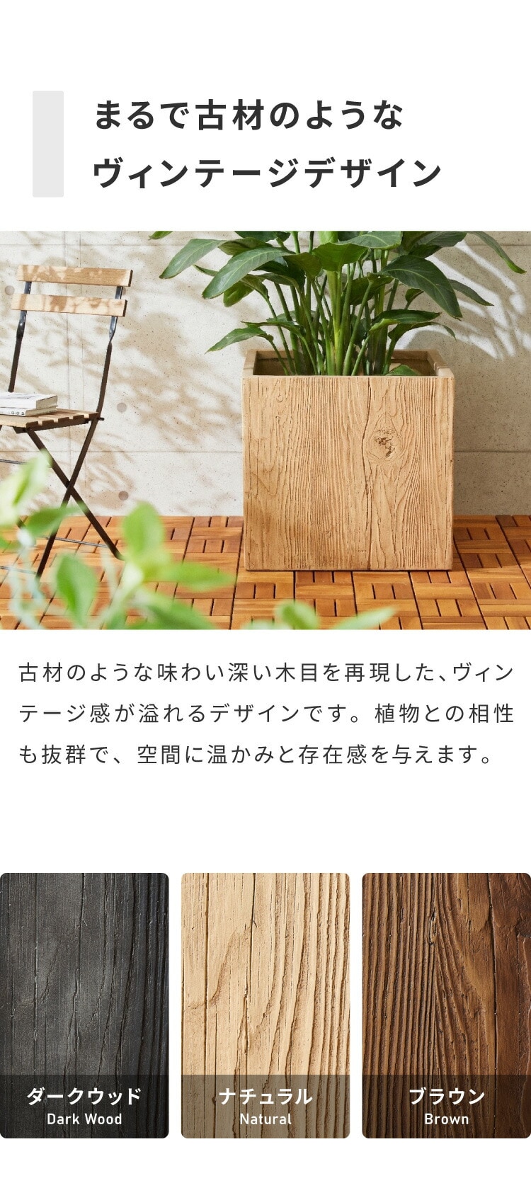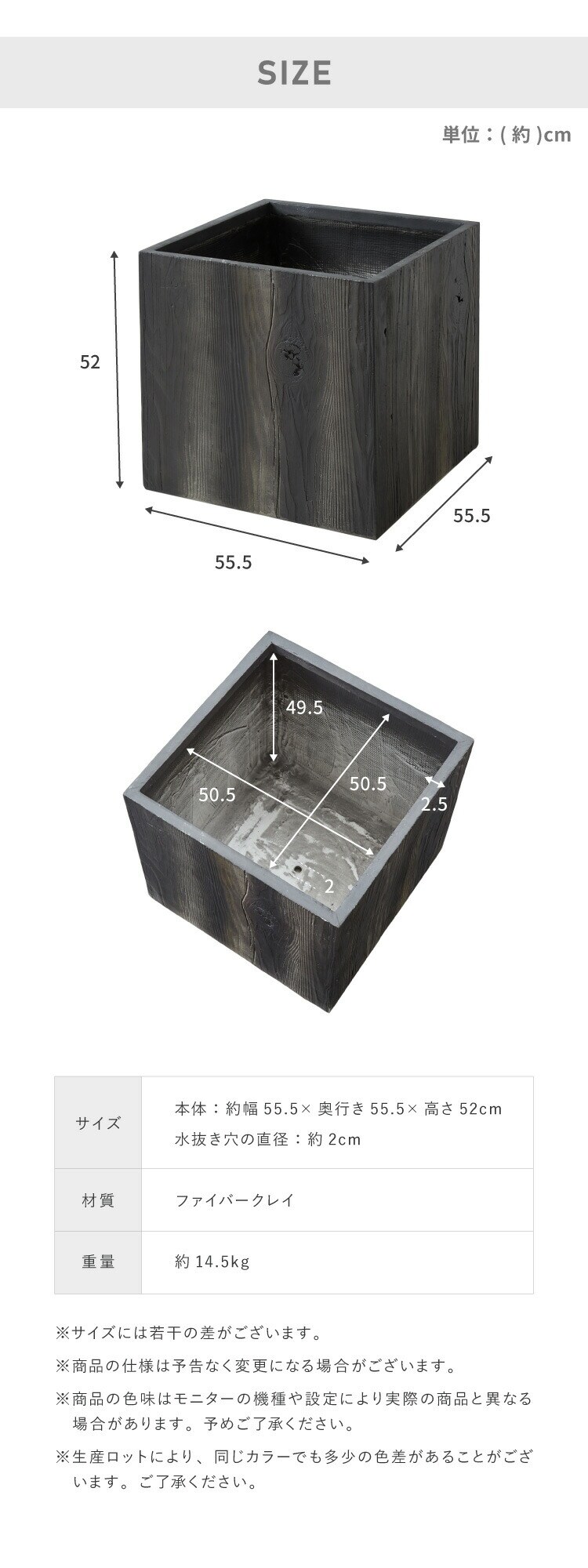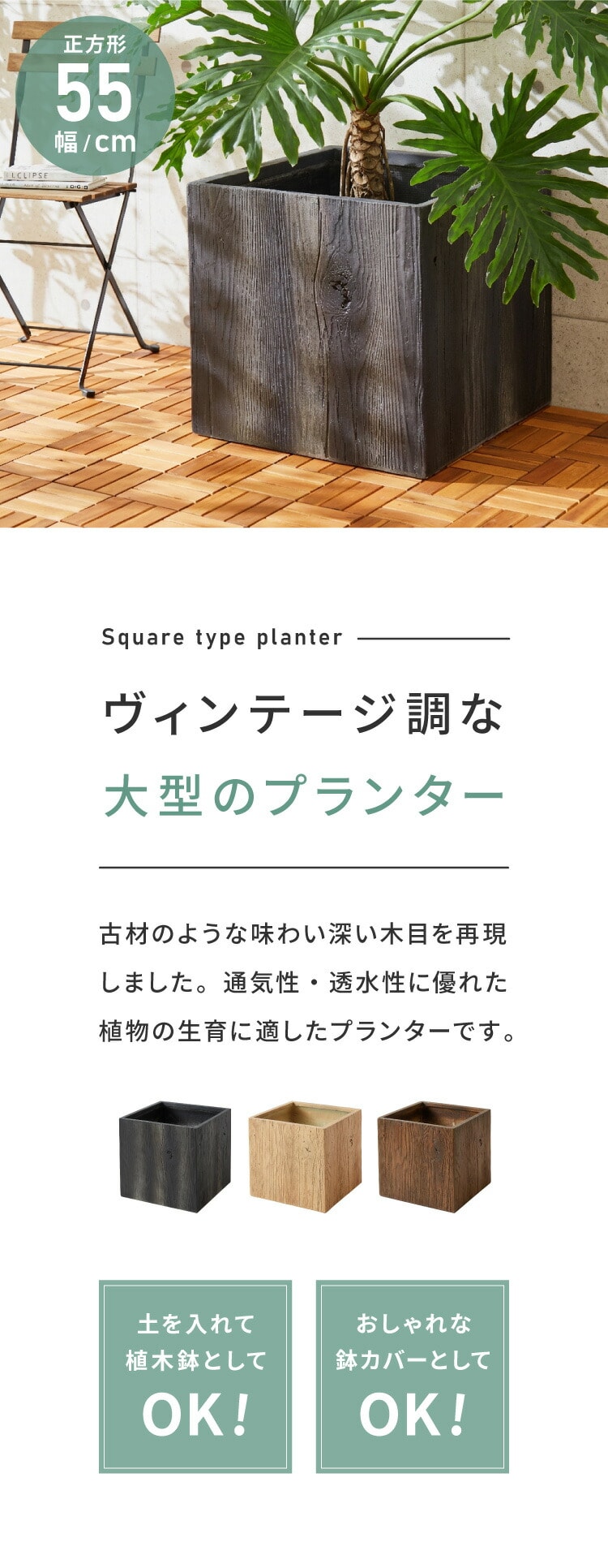 プランター 大型 55cm×55cm スクエア ウッド調 ファイバークレイ 軽量 おしゃれ モダン ナチュラル ヴィンテージ 木目 古材風 ガーデニング 植木鉢 鉢カバー プランターカバー 鉢植え 大型プランター