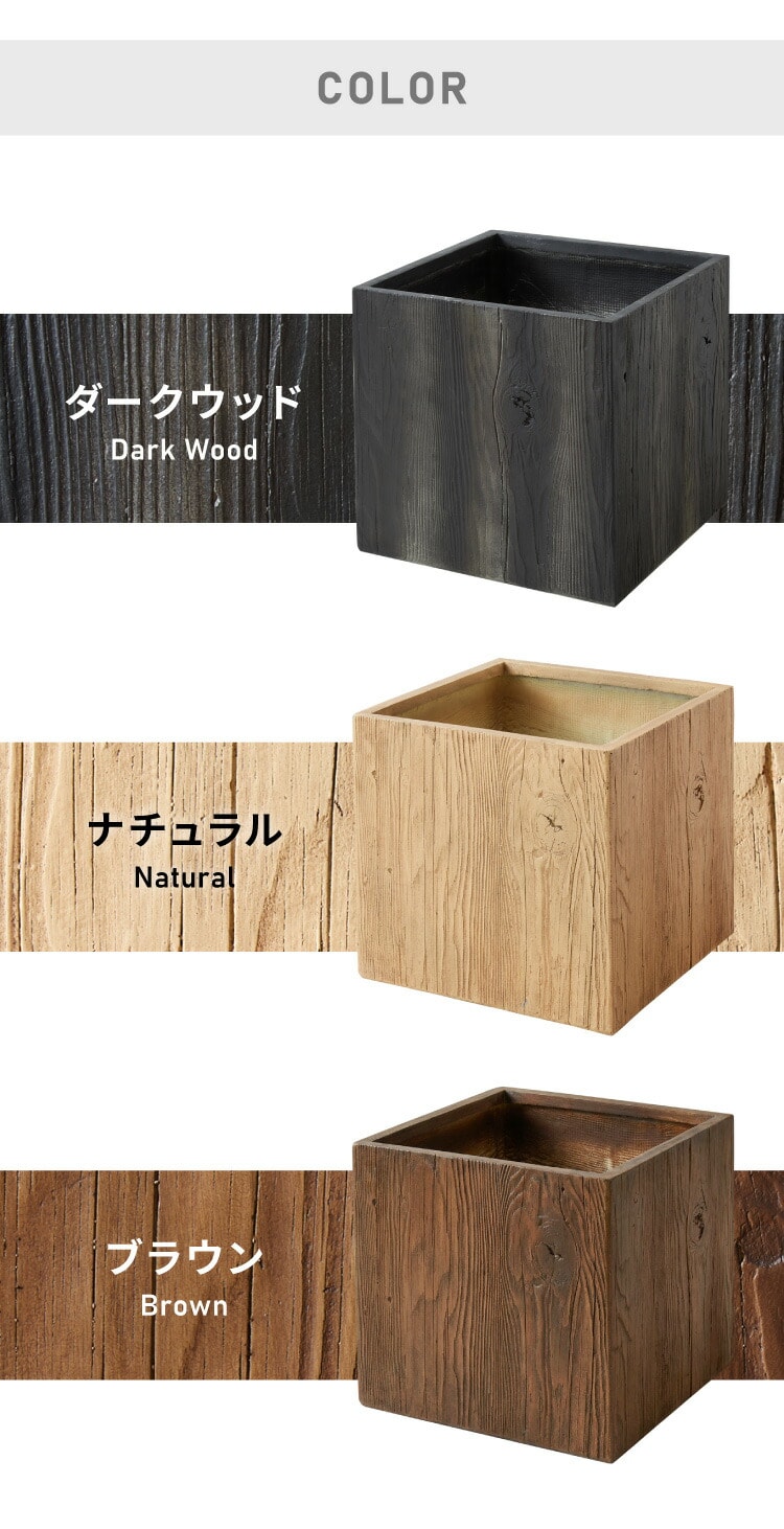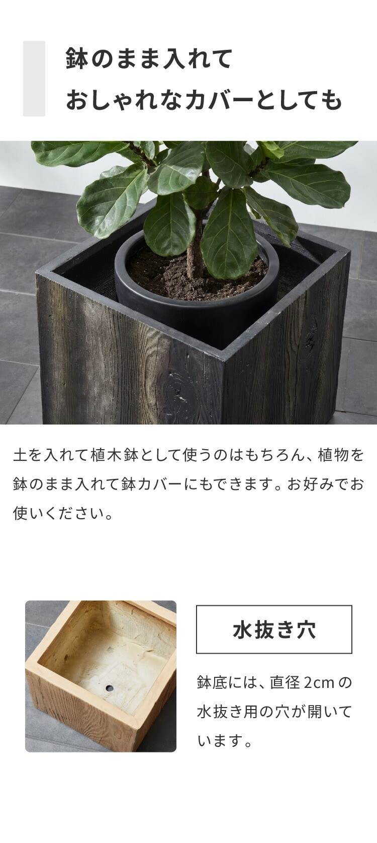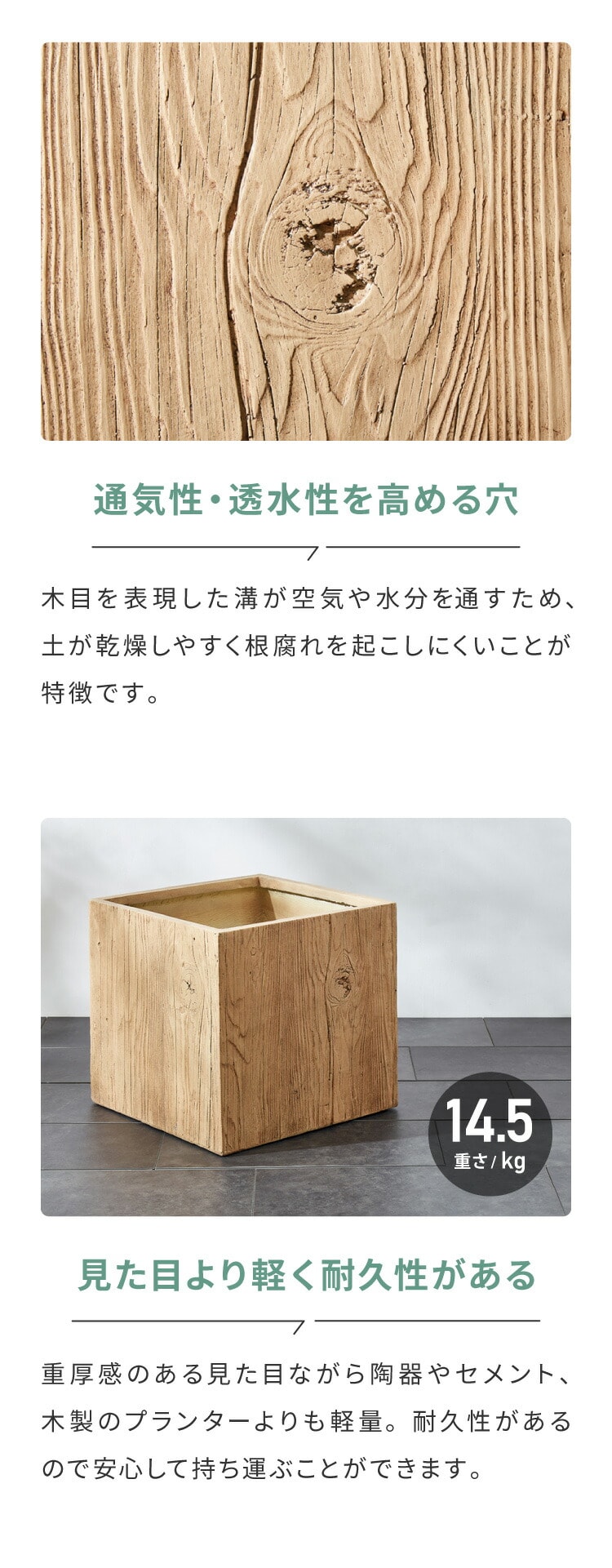 プランター 大型 55cm×55cm スクエア ウッド調 ファイバークレイ 軽量 おしゃれ モダン ナチュラル ヴィンテージ 木目 古材風 ガーデニング 植木鉢 鉢カバー プランターカバー 鉢植え 大型プランター