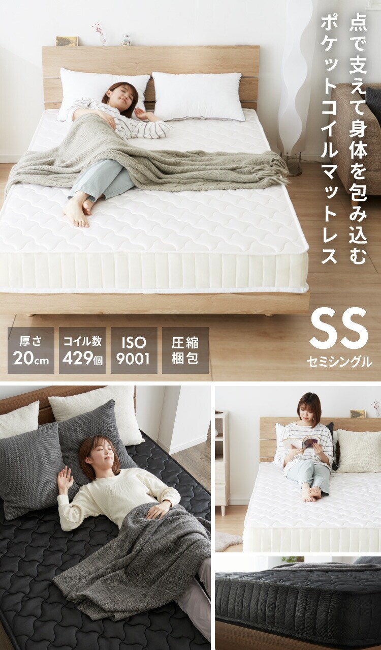 ポケットコイル マットレス セミシングル 厚さ20cm 圧縮梱包 ホワイト 通気性 ベッド ポケットコイルロールマットレス ポケット コイル スプリング ベッドマット マット 厚み20cm ロール梱包【送料無料】