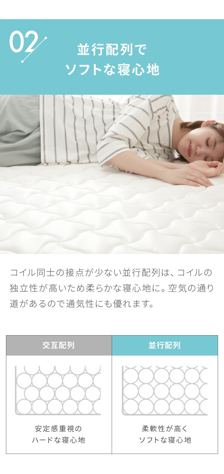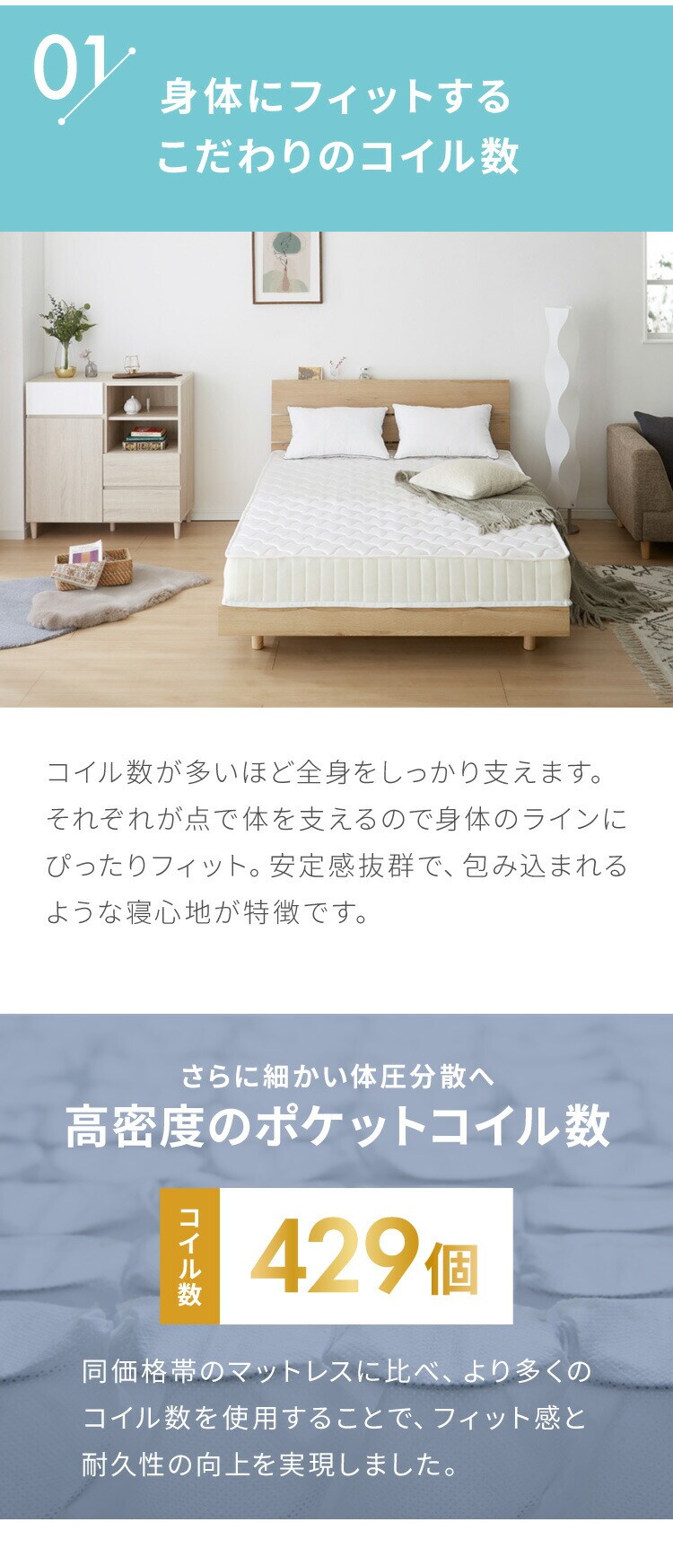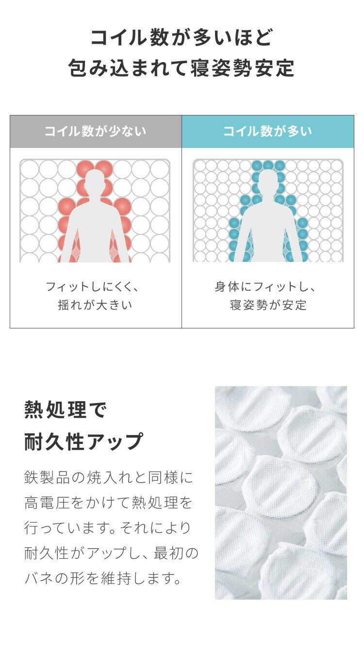 寝具、マットレス、ポケット、コイル、ポケットコイル、ポケットコイルマットレス、ロールマットレス、熱処理、ホワイト、白、ブラック、黒、圧縮、梱包、ロール、梱包、コンパクト、通気性、キルティング、体圧分散、新生活、エコテックス認証、極厚