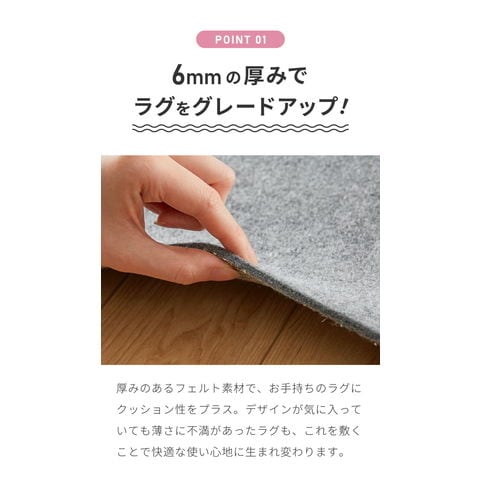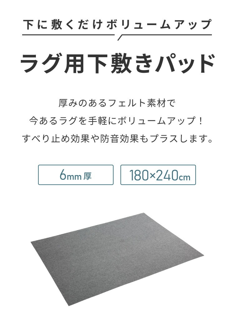 ラグパッド、ラグ用マット、ラグ用、ベースマット、下敷き専用、180cm、幅180、長方形、クッション、インテリア、ふかふか、ふっくら、下敷きパッド、床冷え軽減、足音軽減、ペット、ペットマット、クッション性、防音性、防寒性、人気、おすすめ、オススメ、極厚、長持ち、へ足りにくい、高反発、滑り止め付き
