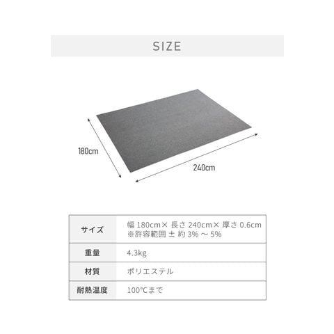 幅180cm×長さ240cm×厚さ0.6cm