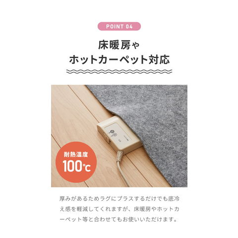 ・耐熱温度100℃なのででホットカーペットや床暖房でも使用できます。