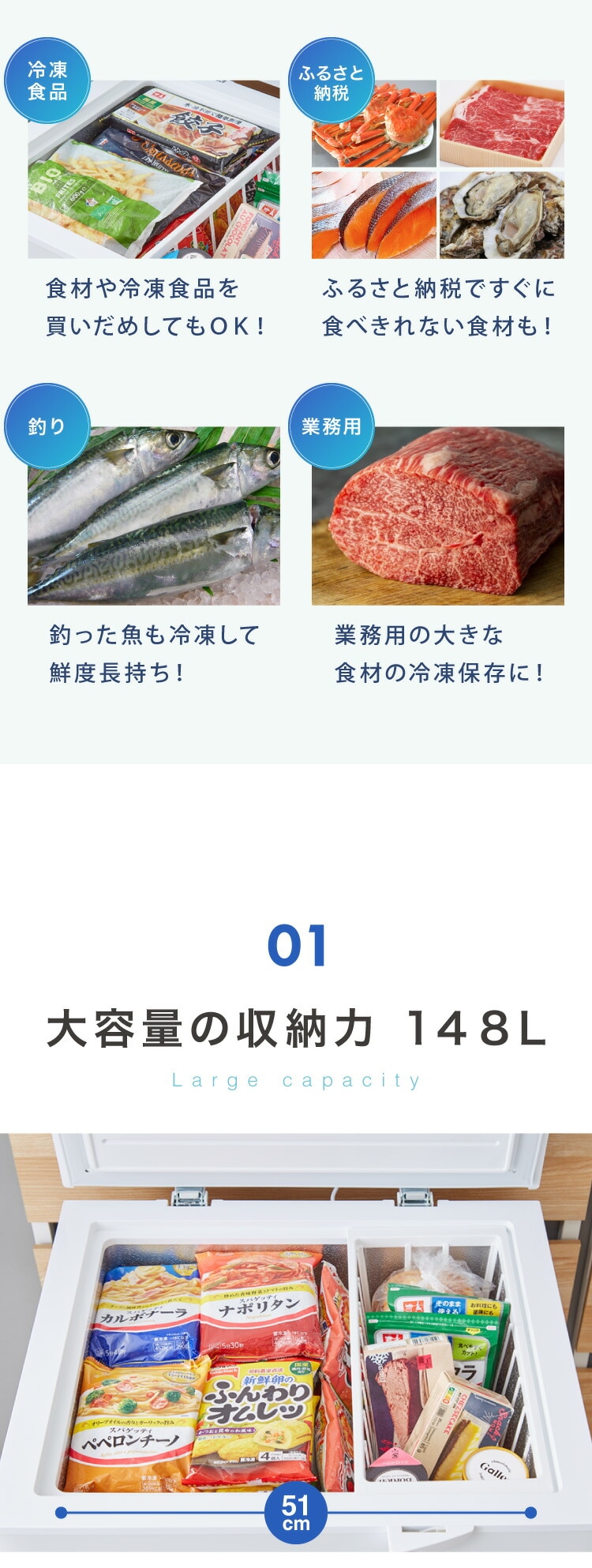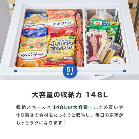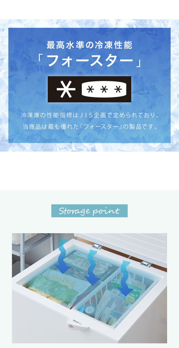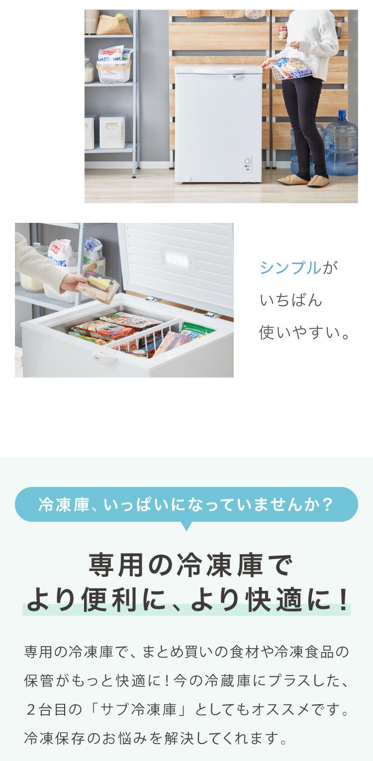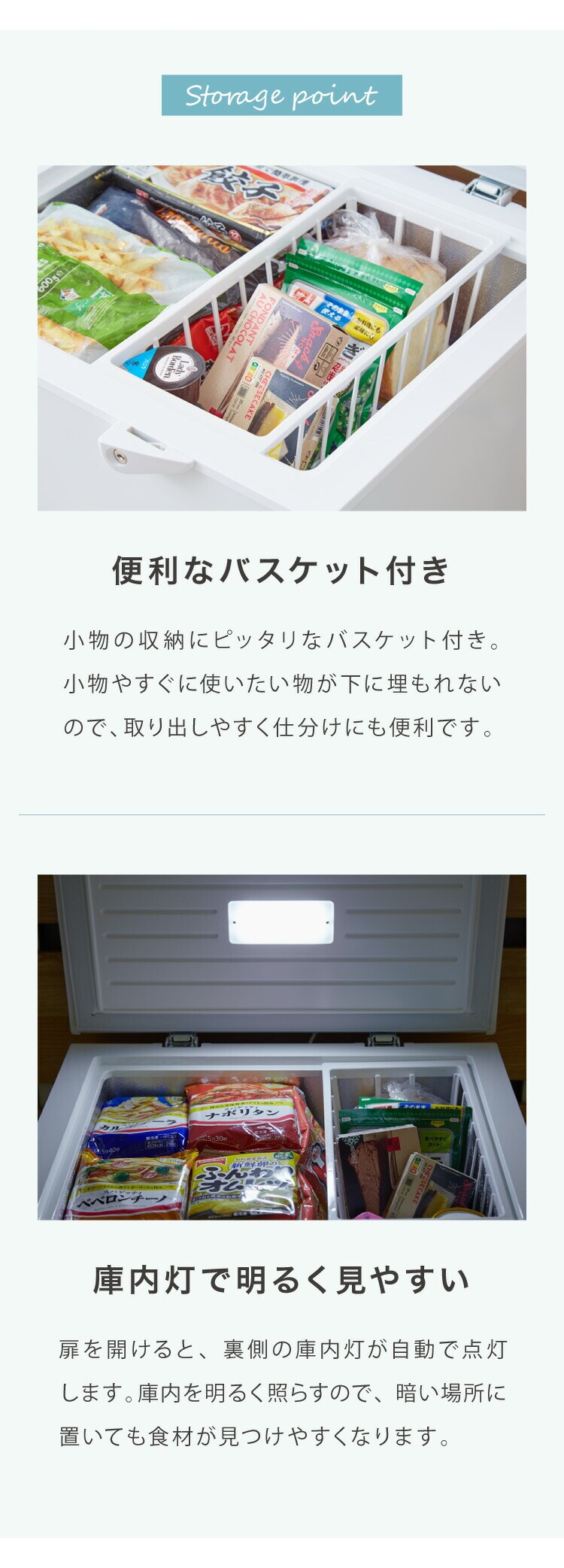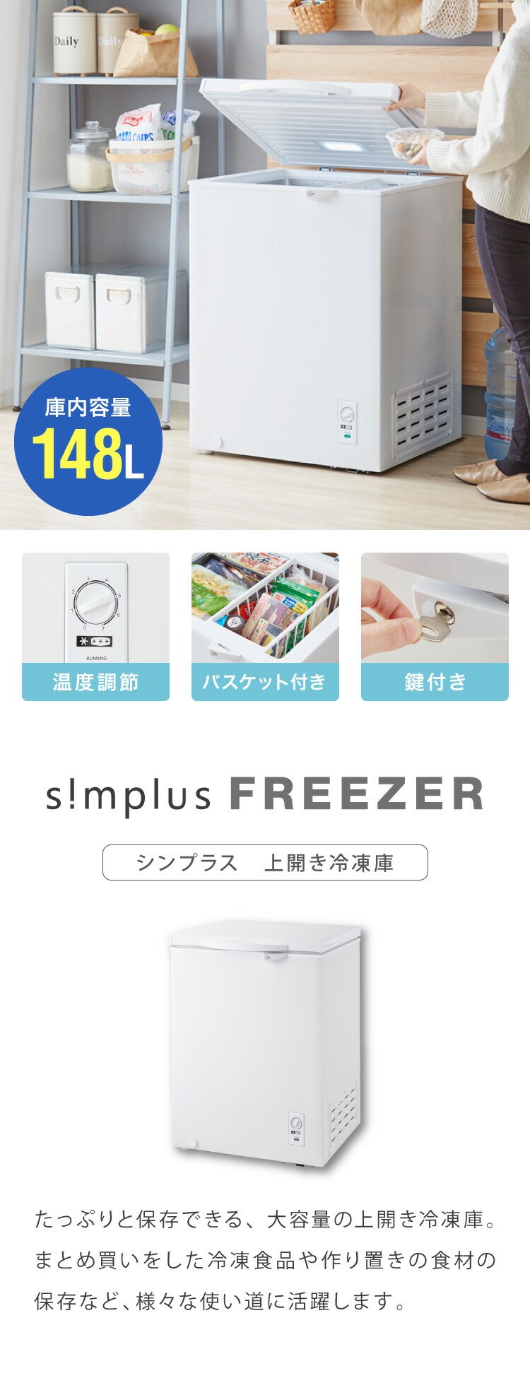 simplus 冷凍庫 上開き 148L 庫内灯付き バスケット付き 鍵付き 静音 大容量 冷凍冷蔵庫 省エネ 温度調整 冷凍ストック まとめ買い 冷凍食品 SP-148LUPD シンプラス【送料無料】