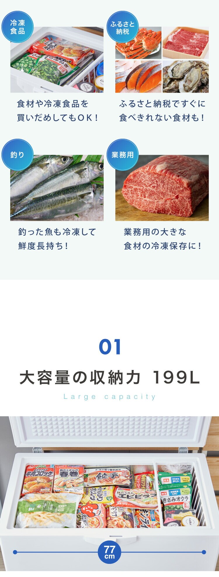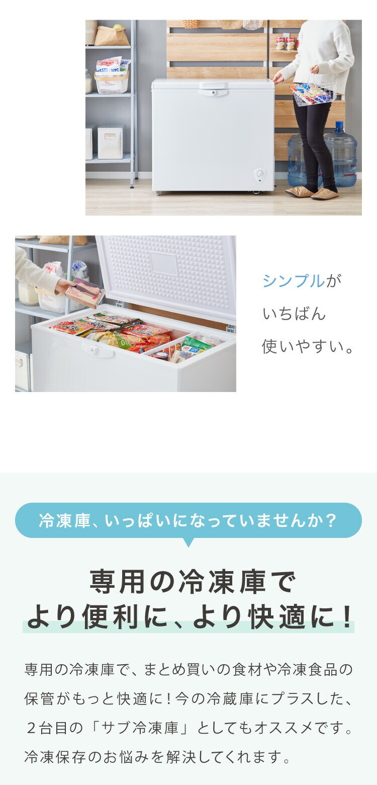 simplus 冷凍庫 上開き 199L バスケット2個付き 鍵付き 静音 大容量 冷凍冷蔵庫 省エネ 温度調整 冷凍ストック まとめ買い 冷凍食品 SP-199LUPD シンプラス【送料無料】のレビュー